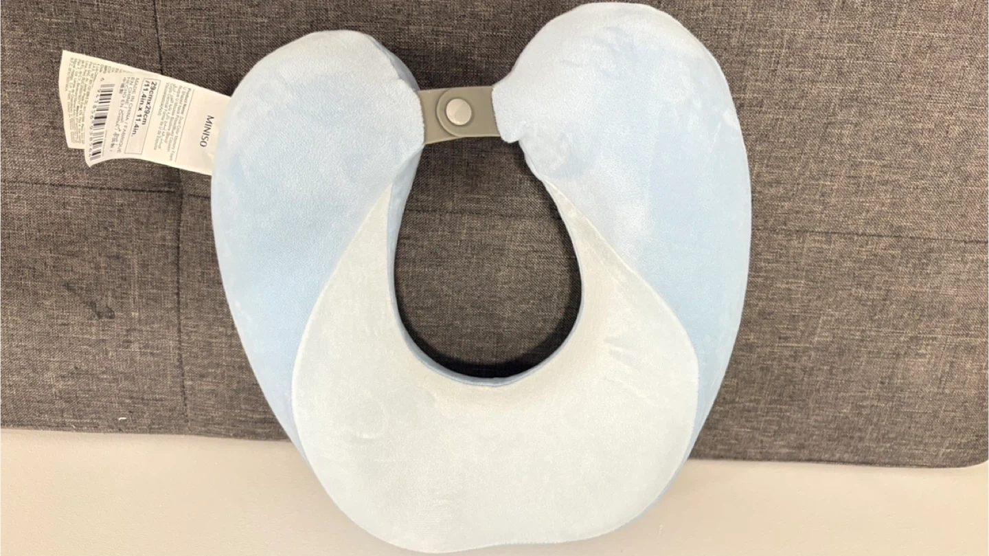 Selling a gently used Miniso neck pillow from the Dreamer Collection! It's made of memory foam and is a light blue colour. The size is 29cm x 29cm / 11.4in x 11.4in