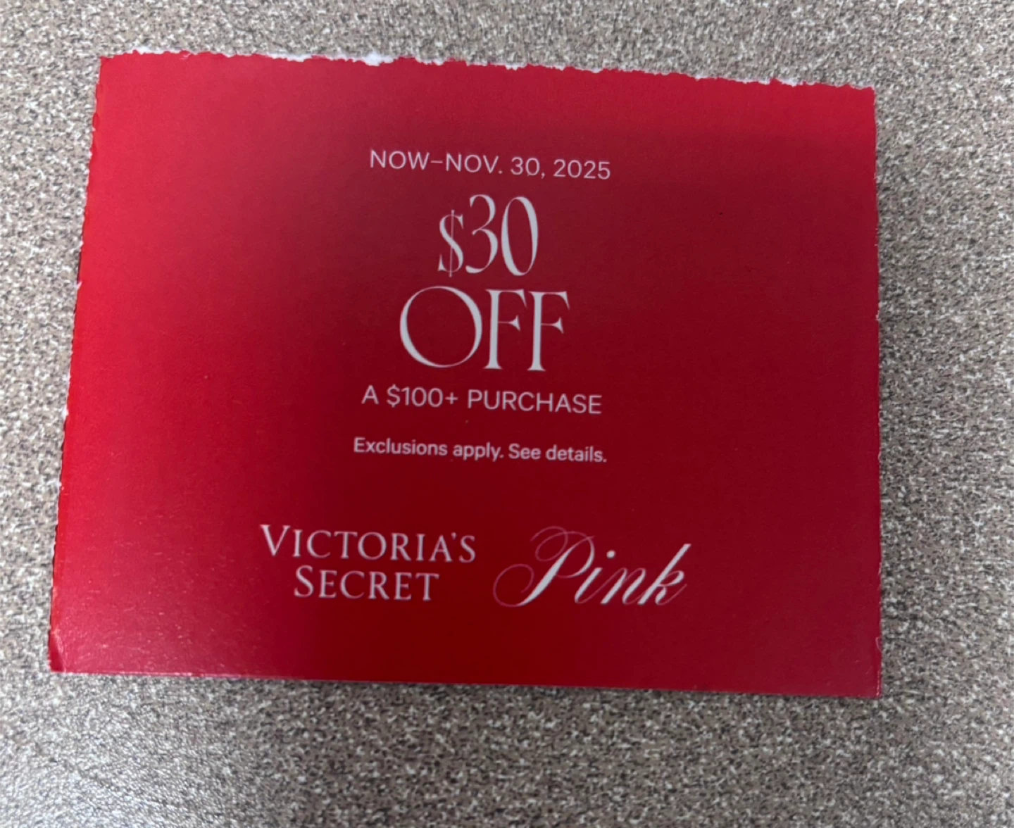 1 / 11 / 1Buy & SellVictoria's Secret Pink $30 off coupon - Exp Nov 2025Victoria's Secret Pink $30 off coupon - Exp Nov 2025FreeVictoria's Secret Pink coupon for $30 off a $100+ purchase! Coupon expires November 30, 2025ConditionNewBrandVictoria's SecretWHERE TO MEET4 E 117th StView MapSELLERverifiedJennyEast Harlem1000+185 reviews1 chats·0 favorites·16 viewsSEND CHAT TO SELLERHi Jenny! I’m interested in your listing.Hi Jenny! I’m interested in your listing.Get the Karrot app to chatSign In to chat