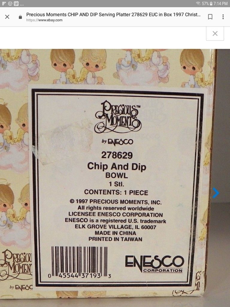 1 / 51 / 5Buy & SellNew precious moments chip and dip platter dated 1997New precious moments chip and dip platter dated 1997$24Let me know if you're interested!WHERE TO MEETCheck LocationView MapSELLER570258Valley Stream100 reviews0 chats·1 favorites·3 viewsSEND CHAT TO SELLERHi 570258! I’m interested in your listing.Hi 570258! I’m interested in your listing.Get the Karrot app to chatSign In to chat