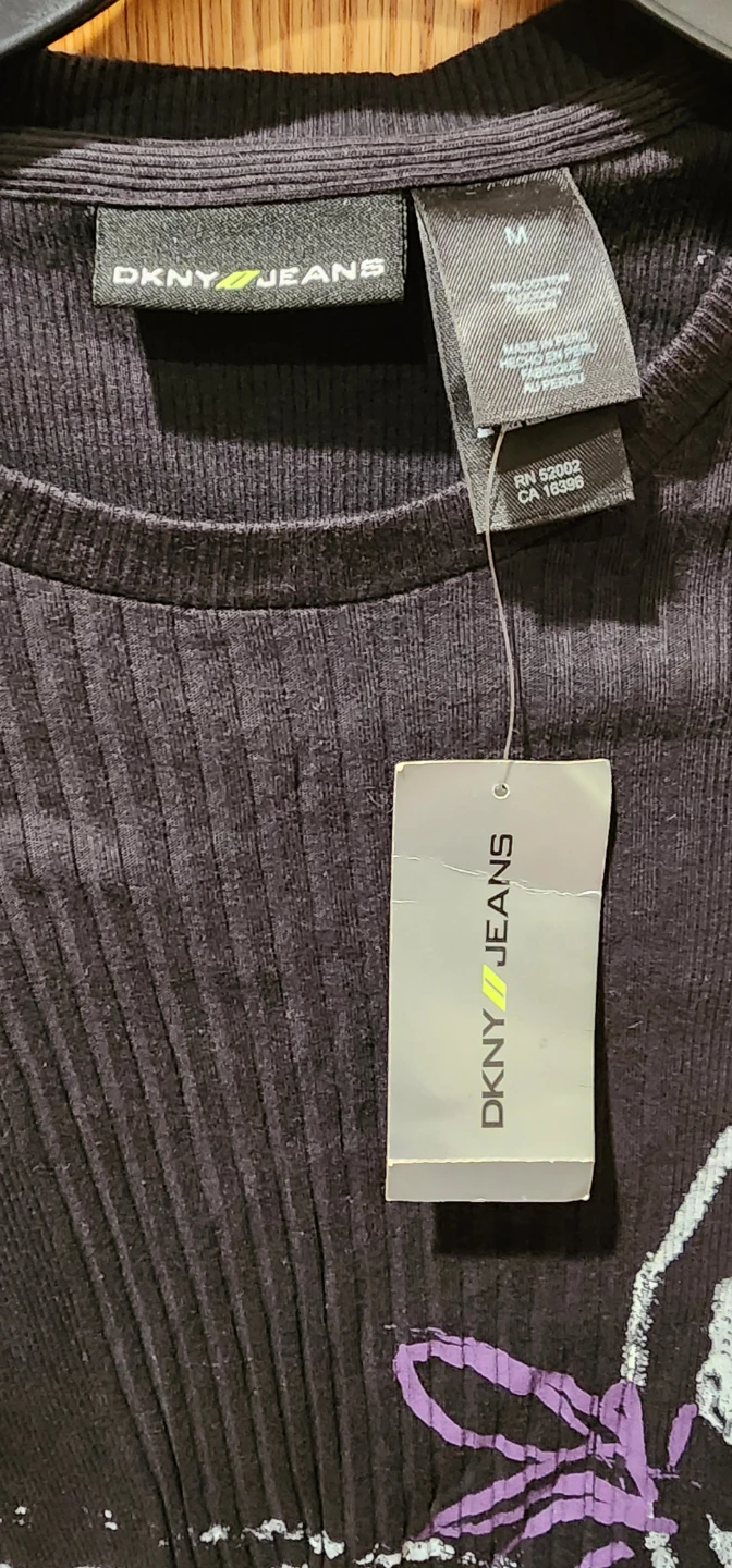Selling a DKNY Jeans black graphic tee in size M. It has a cool design and is in great condition! Perfect for casual wear.