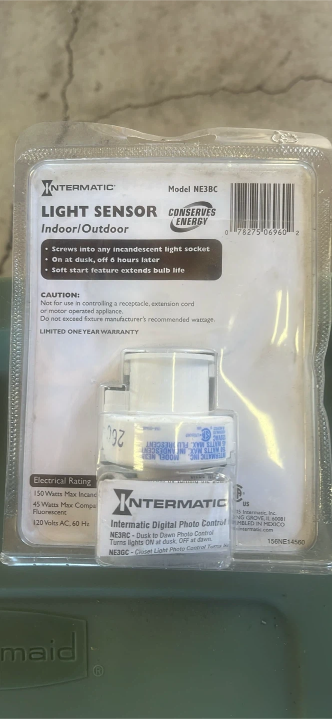 Selling an Intermatic light sensor, model NE38BC. It's designed for both indoor and outdoor use.