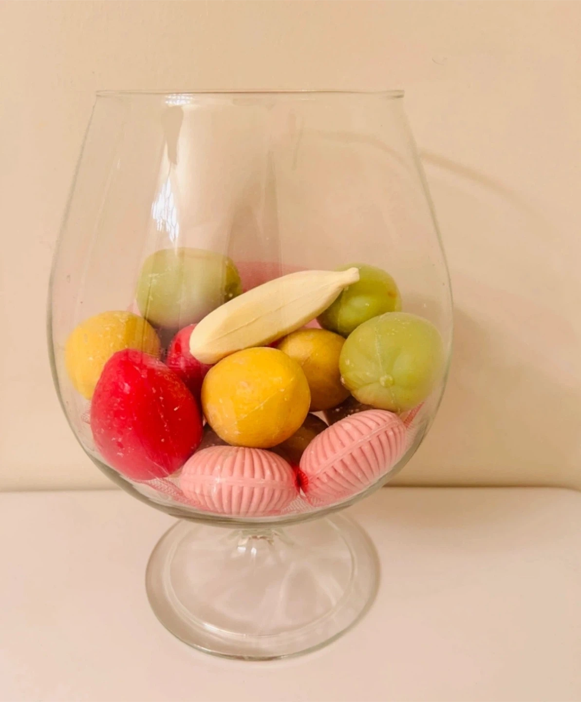 BIG glass goblet with Fruit Shaped Soaps