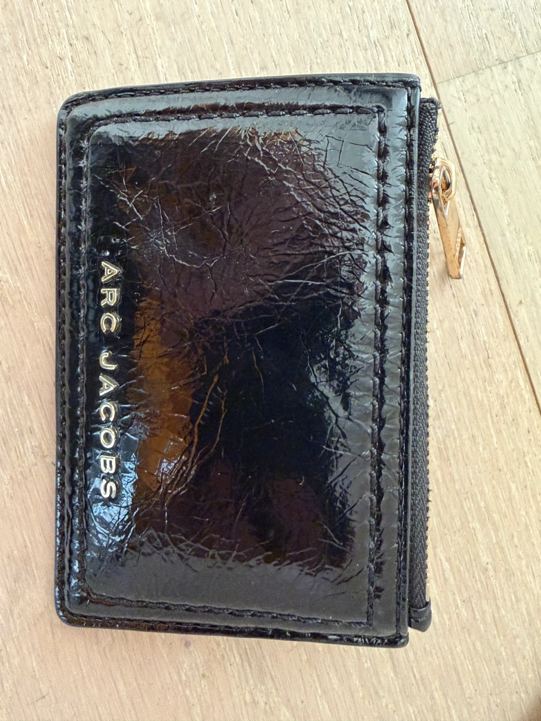 Selling a cute Marc Jacobs wallet in black leather! It's in great condition and has a convenient zip closure. Perfect for carrying your cards and cash in style. The M fell off but otherwise lightly used and like new.