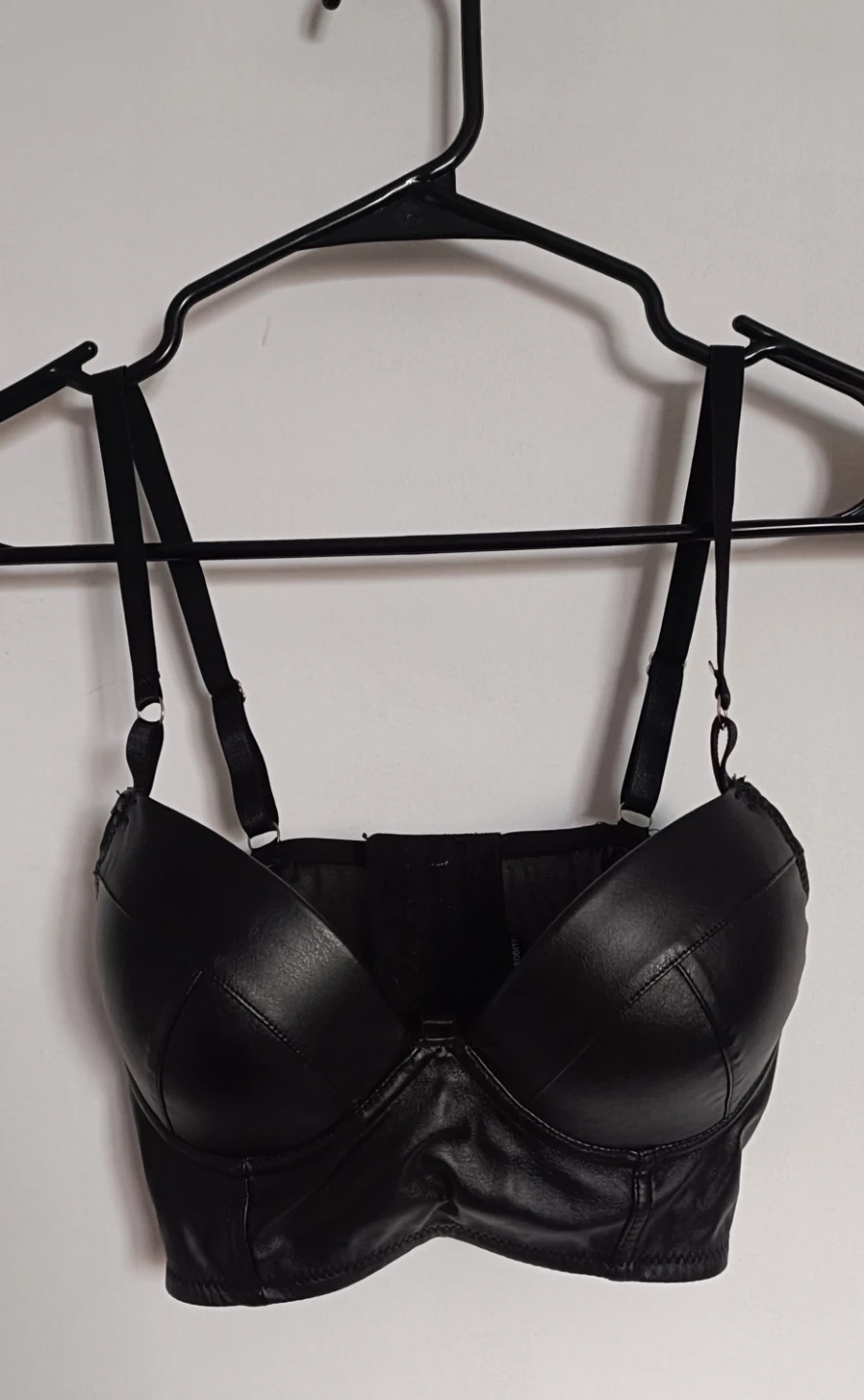 Selling a black leather bra. It's in great condition - has been used twice. The material is leather and the colour is black. Perfect for a grungey/emo outfit!