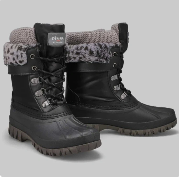 Here are some stylish and functional black winter boots by Cougar! These are the Storm model. They look great for keeping your feet warm and dry this winter season. They're in great condition!