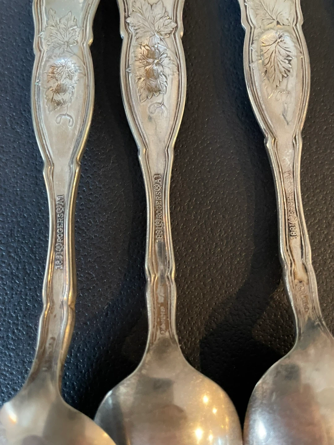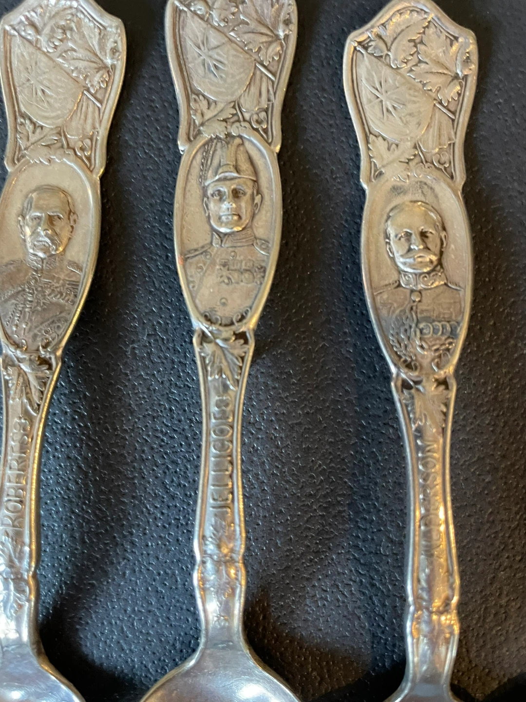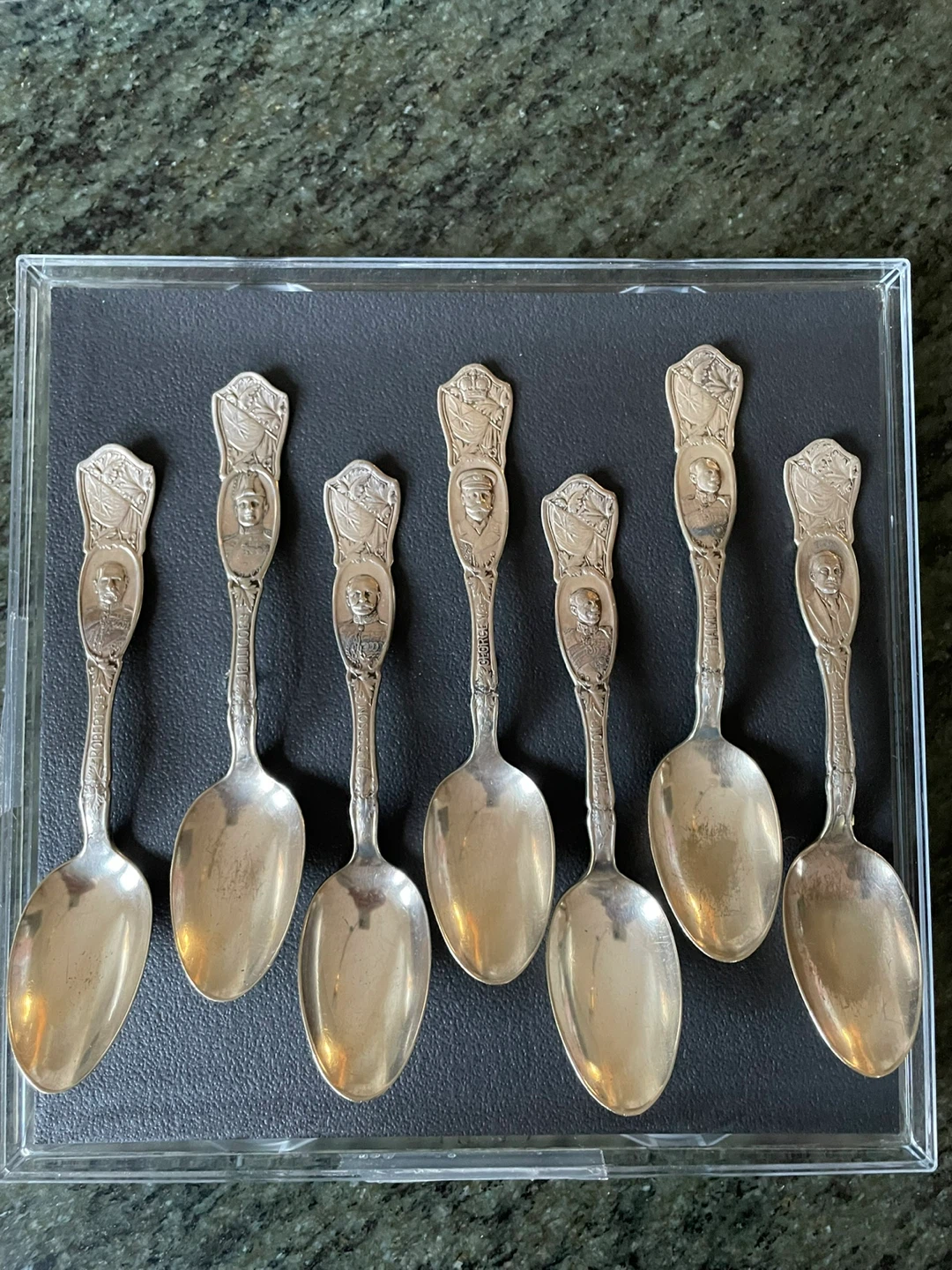 From the WW1 Era between 1915-1920s. Antique/Vintage silver plated spoons marked with ‘1881 Rogers A1’ on the back (Willam A. Rogers, founded in 1881 - which his Company was later acquired by Oneida in 1929) - Spoons commemorating Military Leaders of Generals & Admirals during World War I.