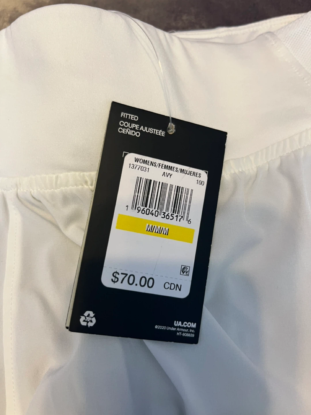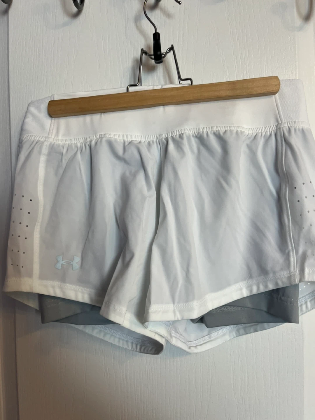 Selling a pair of Under Armour running shorts in white! Brand new. Medium. Originally $70.