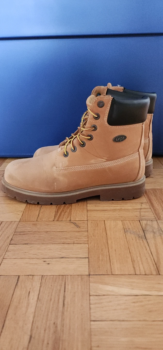 Only worn for one week in snow, these original LUGZ boots are in good condition with nearly new soles and a clean interior. Designed for durability and comfort, they feature: