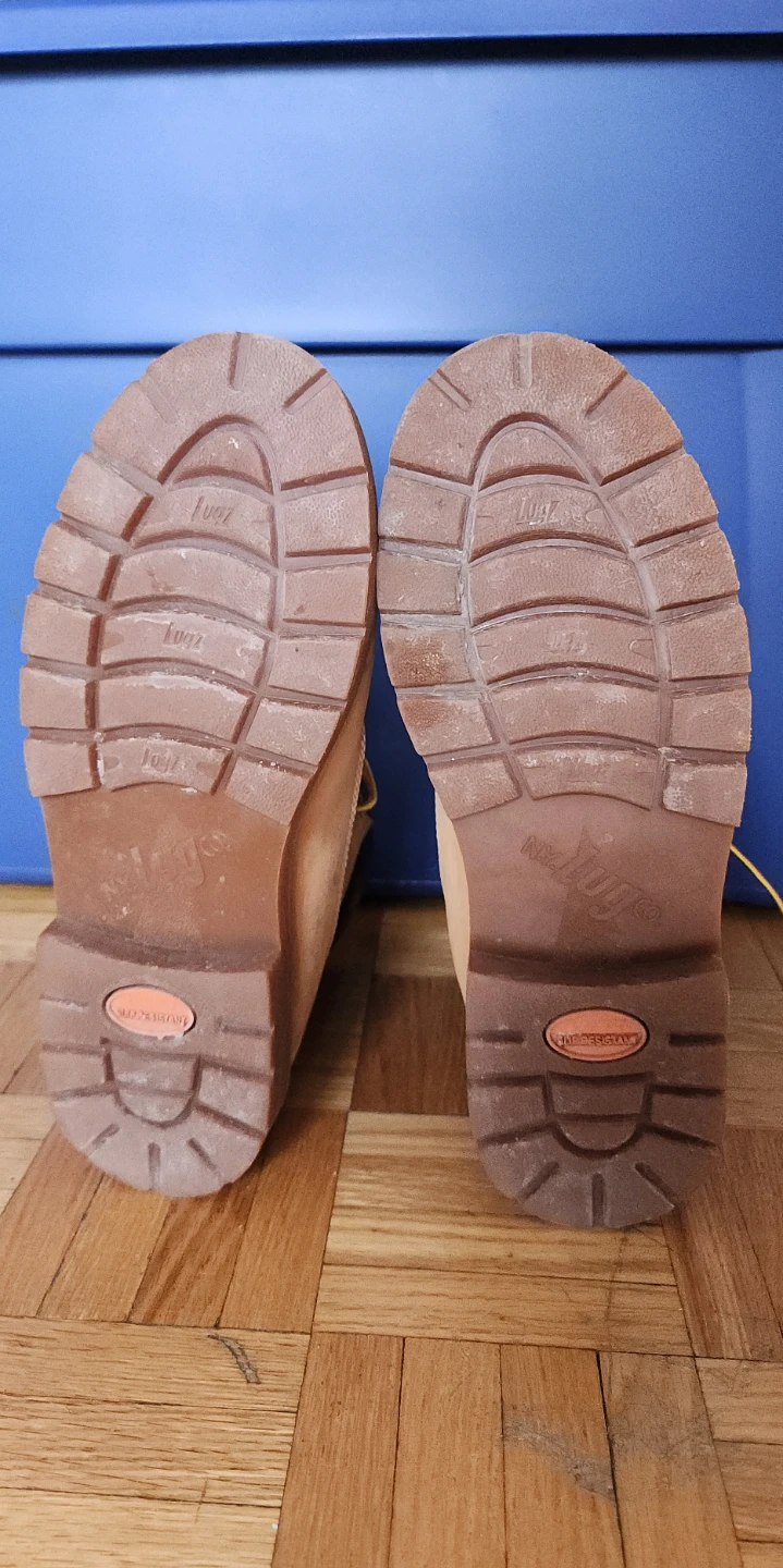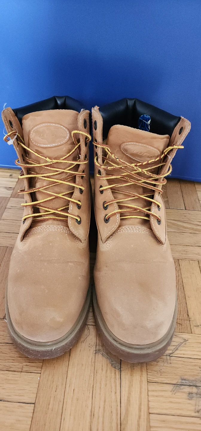 - Slight color fading on the steel toe from winter salt exposure