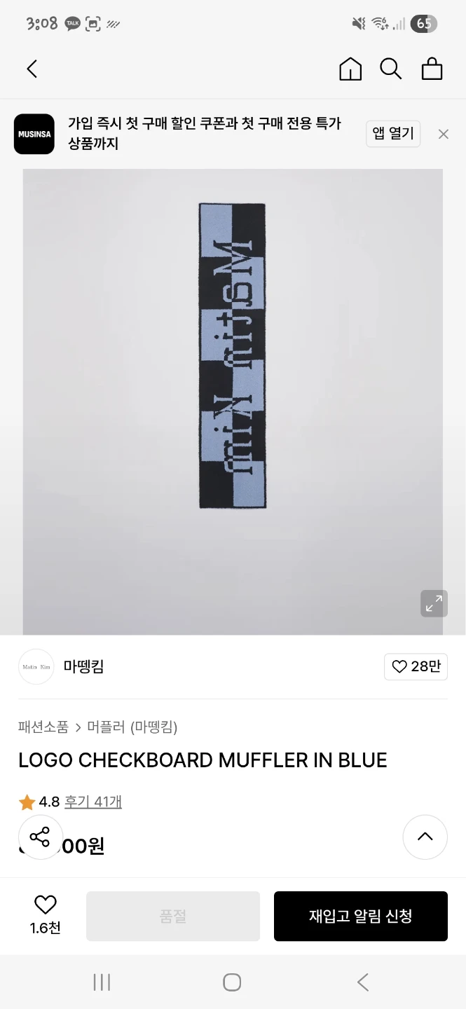Selling a Matin kim logo checkboard muffler in blue. Almost never worn, so it's in great condition!