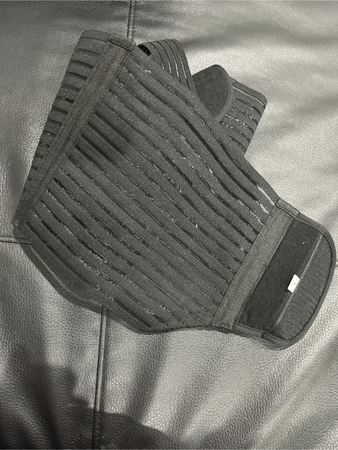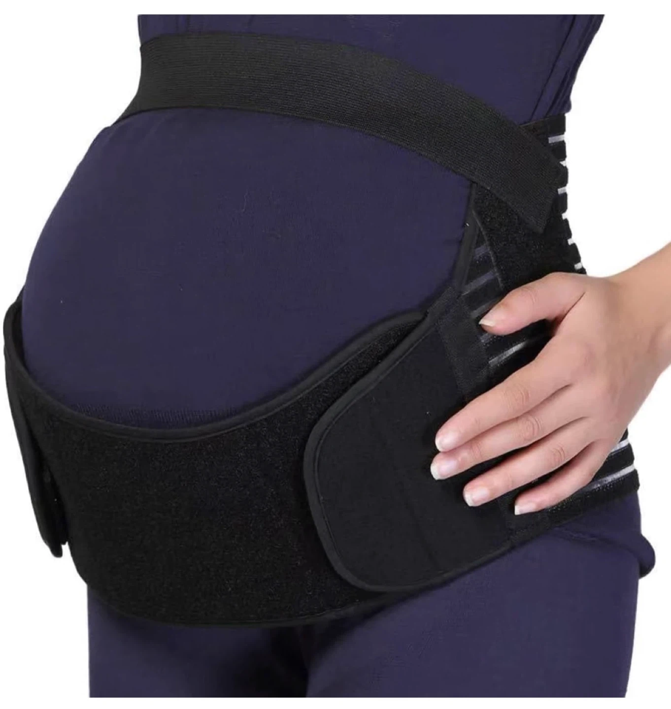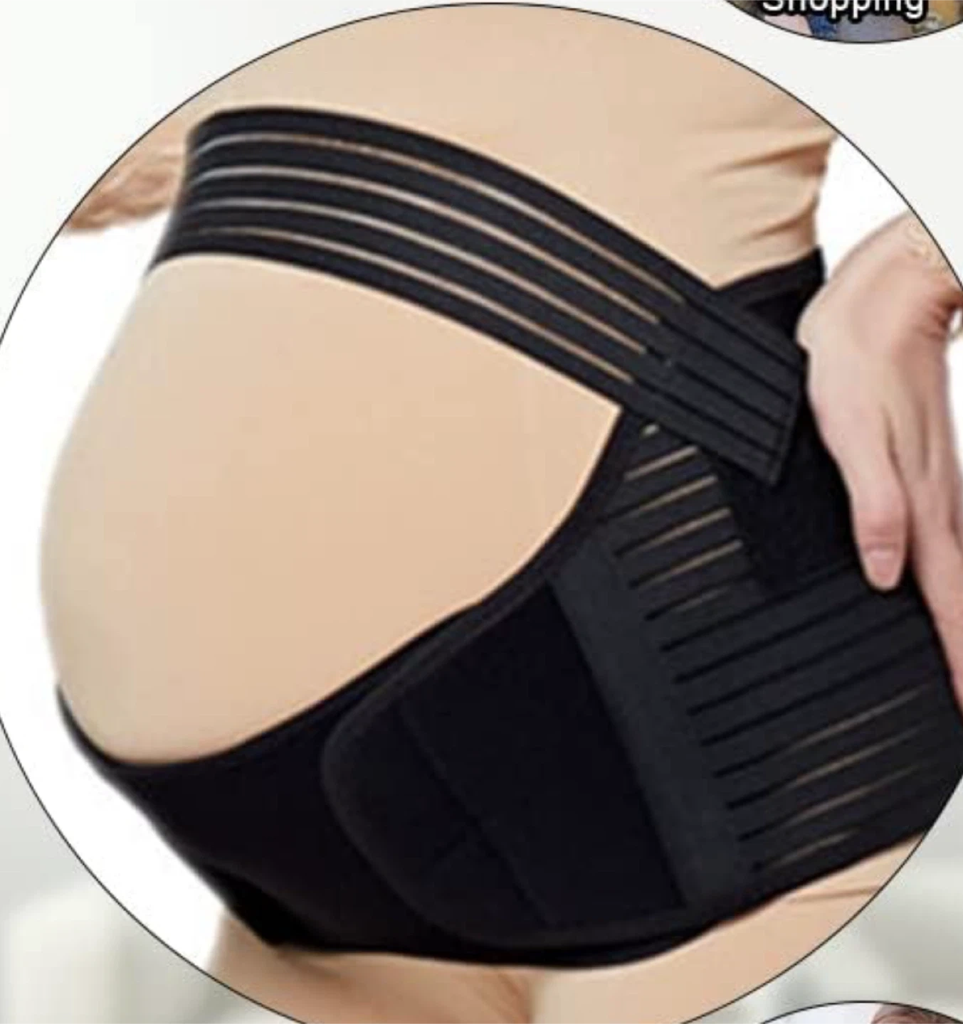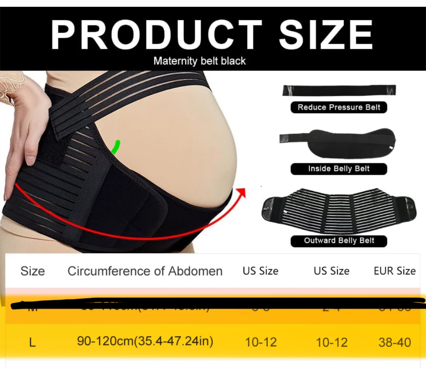 I'm selling a maternity belt in black, size L. It is designed to provide support and reduce pressure during pregnancy. It fits an abdomen circumference of 90-120cm (35.4-47.24 inches).