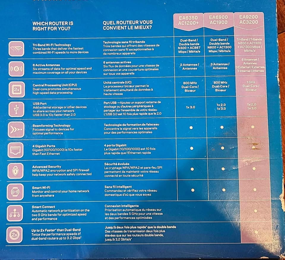 The EA9200 is a tri-band AC3200 router, which means it utilizes three distinctive bands—one at 2.4GHz and two at 5GHz—to deliver combined theoretical speeds of up to 3,200Mbps (hence the AC3200 designation).