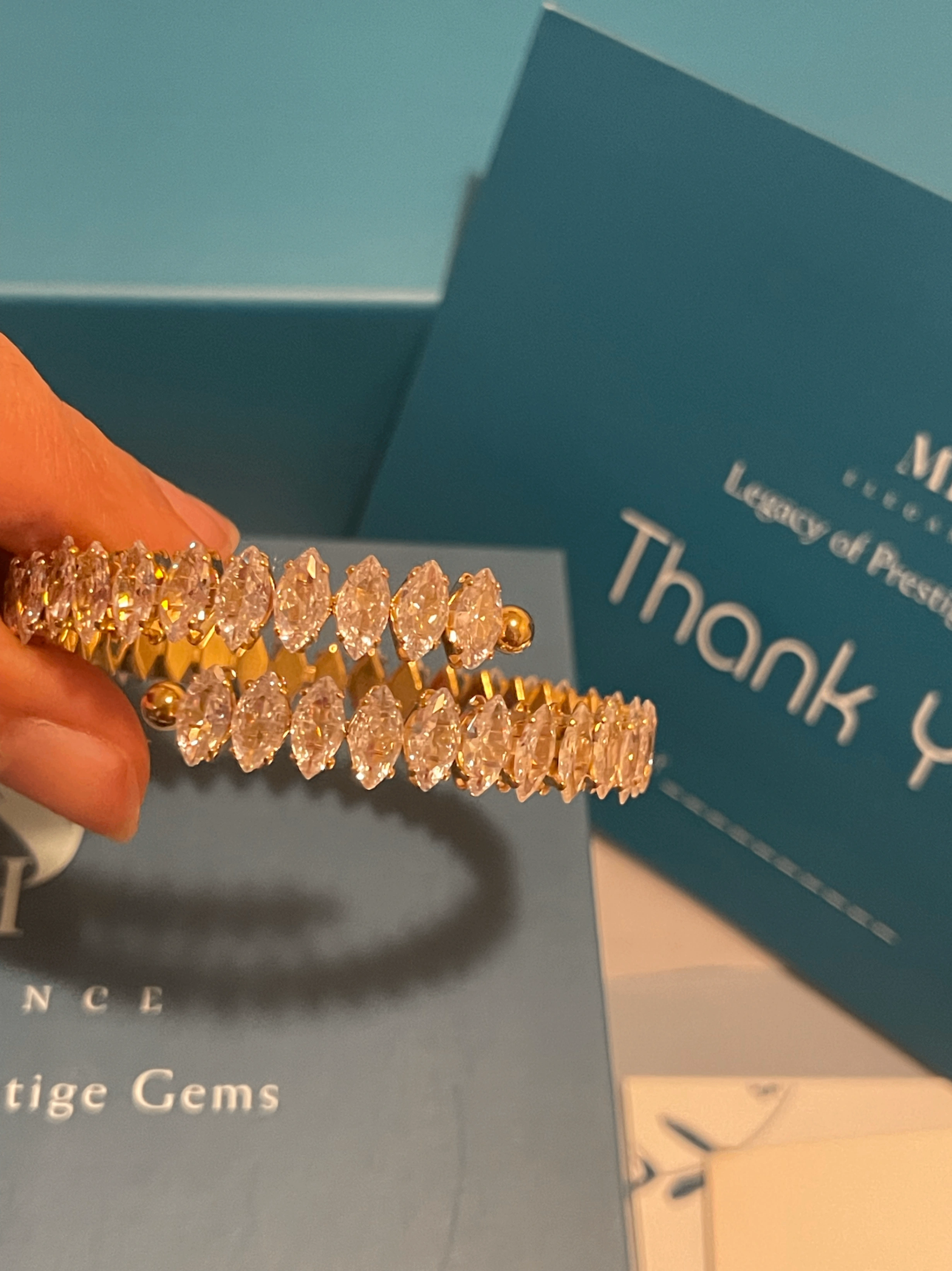 This beautiful Marquise Cut Zircon Bracelet adds a touch of sparkle and elegance to any outfit. The marquise-cut zircon stones shine brightly, catching the light with every move. Made with real 18K gold plated, the comfortable bangle design fits securely and is built to last. Whether for everyday wear or a special occasion, this bracelet is a perfect way to elevate your style.