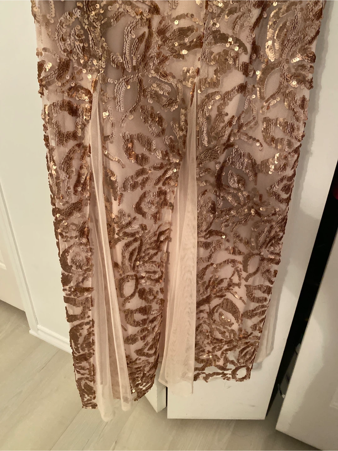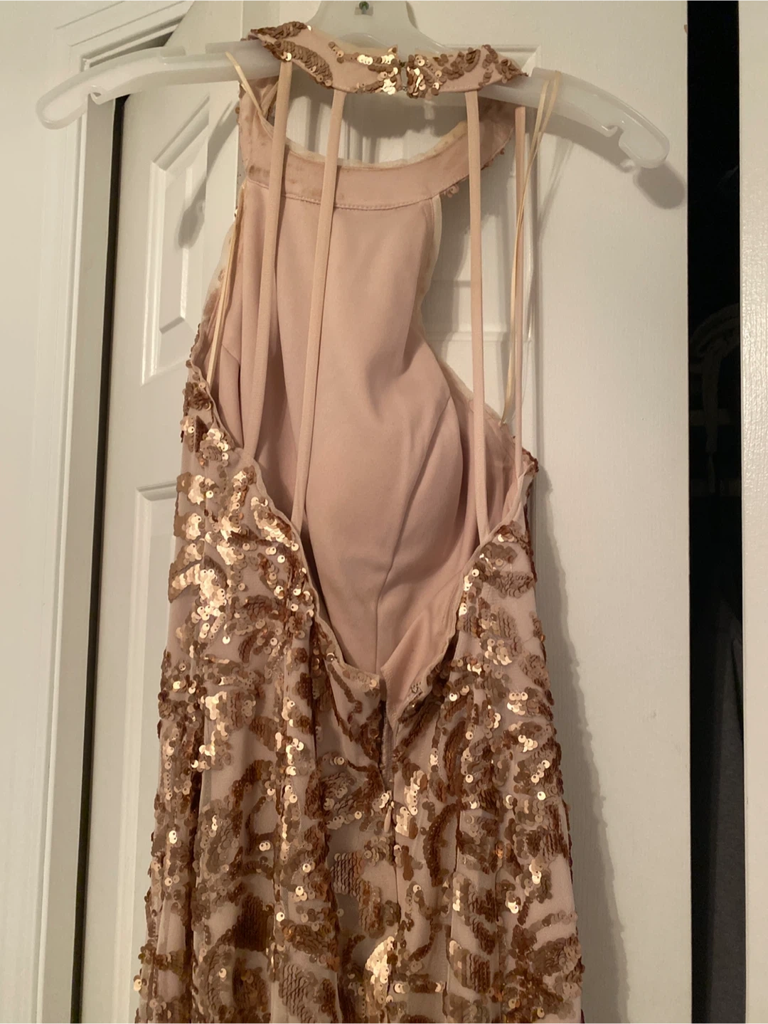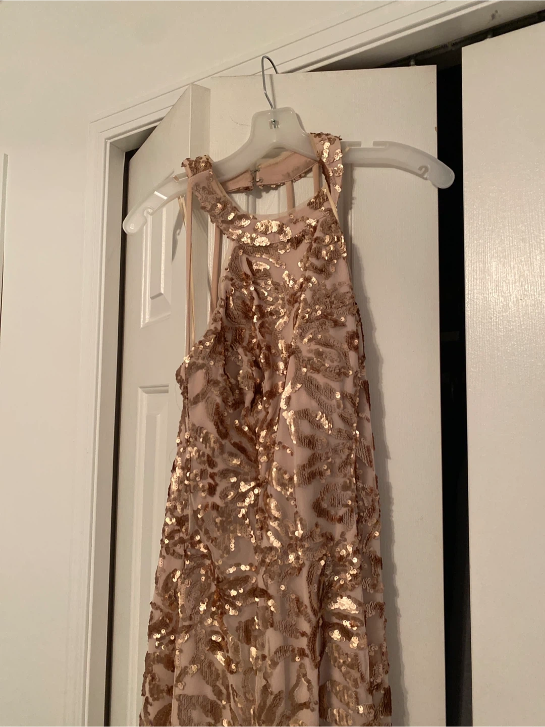 Selling a beautiful sequin formal dress! It's in great condition and perfect for a special occasion. The dress features a unique design with intricate sequin detailing. It's sure to make you stand out!