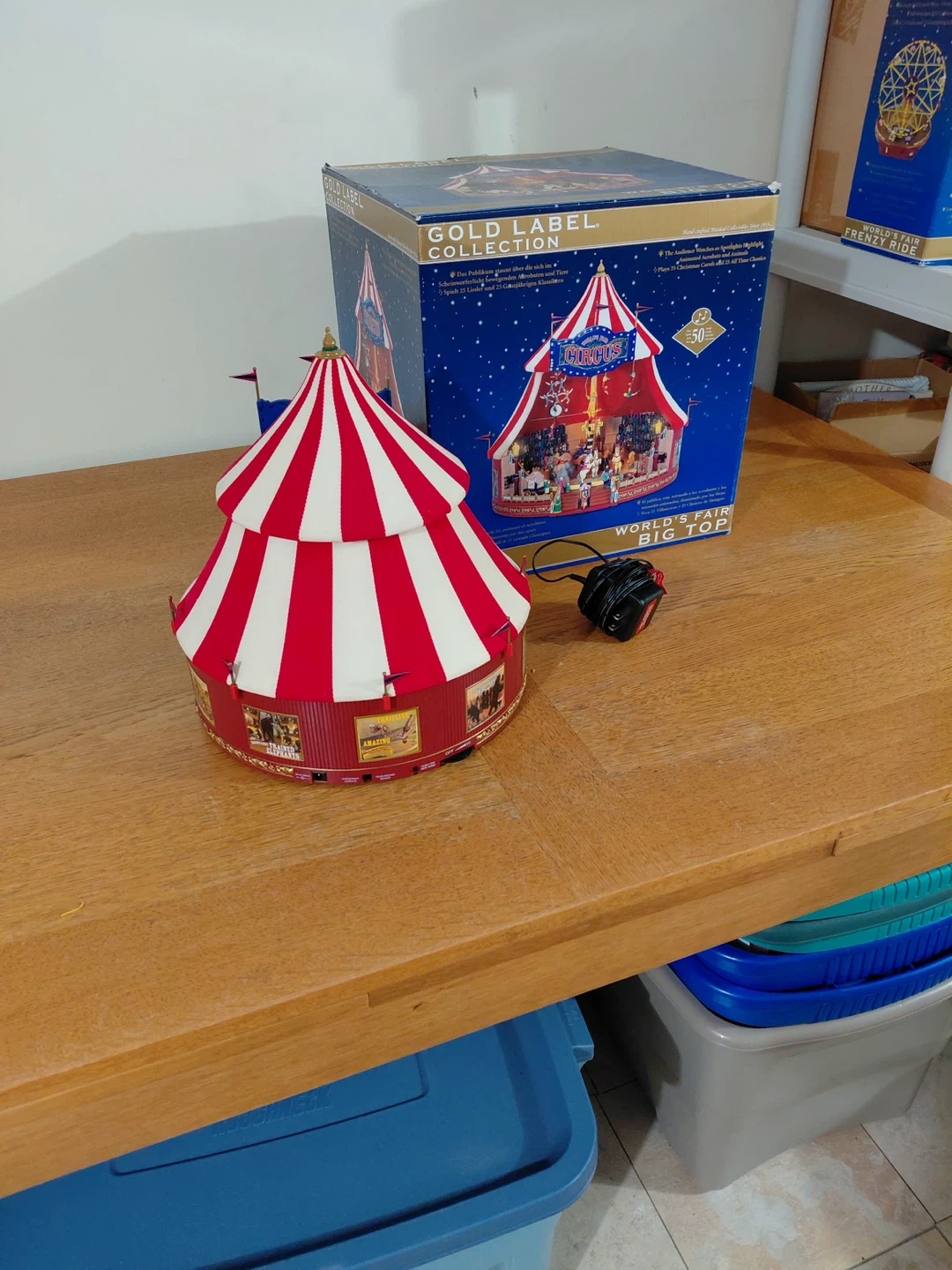 Selling a Lemax World's Fair Big Top from the Gold Label Collection! This hand-crafted animated collectible has spotlight highlights and plays 25 Christmas carols and all-time classics. The box is included!