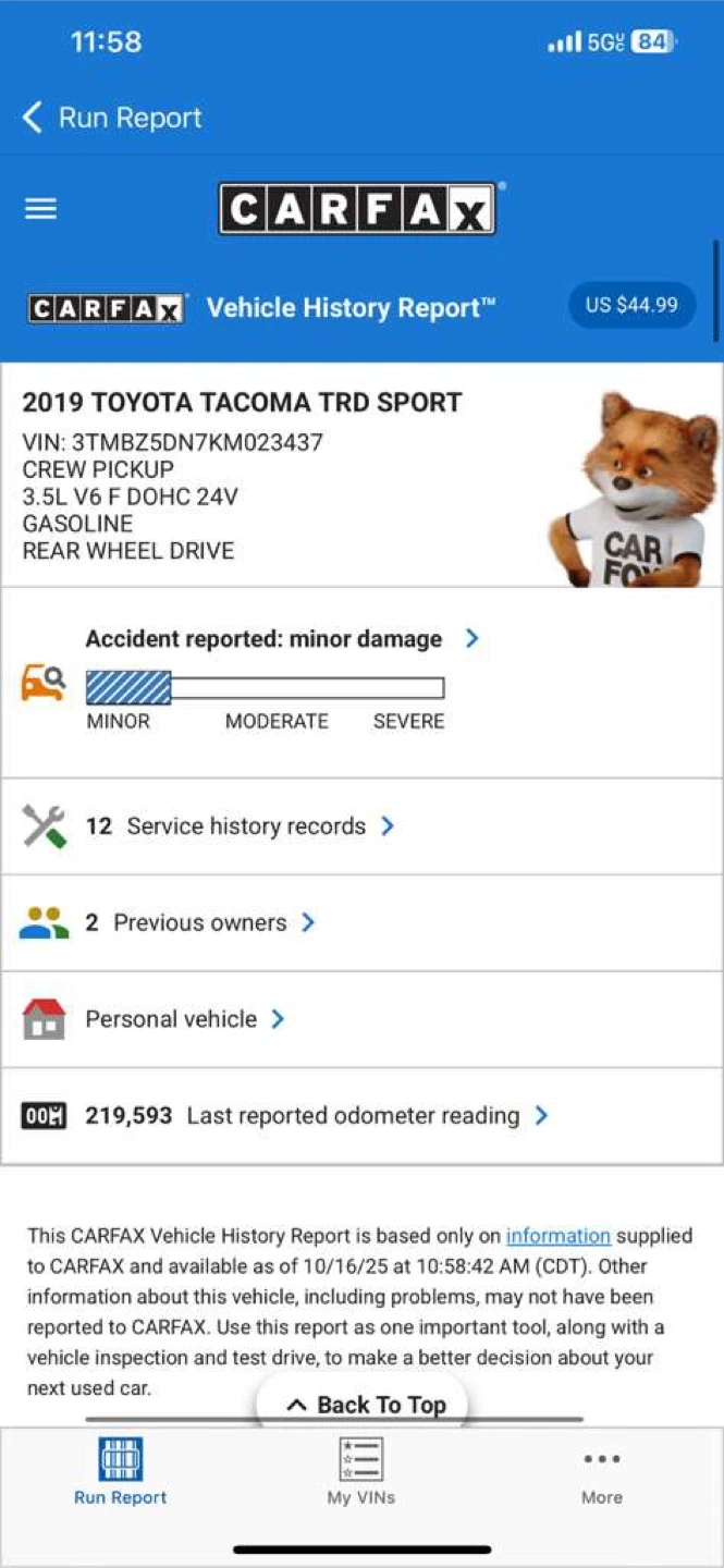 Selling a black Toyota Tacoma TRD Sport truck. It's in great condition and ready for a new owner! The TRD Sport trim offers a blend of style and performance. Feel free to take a look! PRICE$18,300