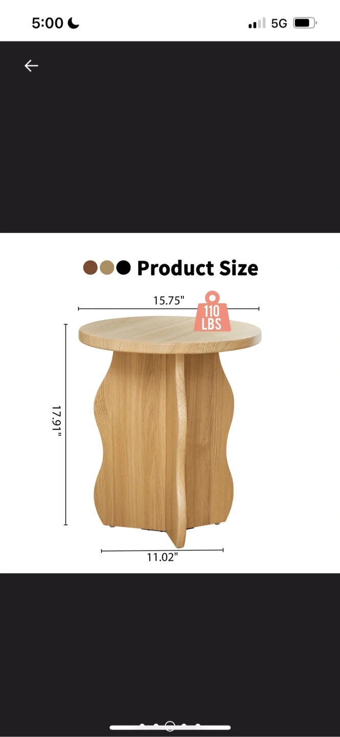 New Round Wooden Side Table - 15.75" x 17.91"