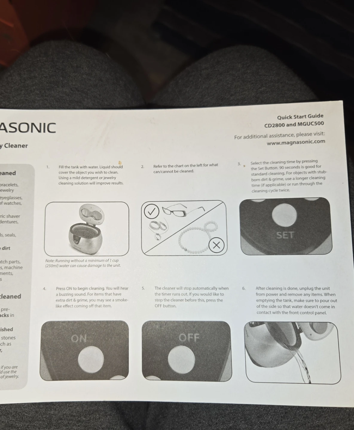Keep your valuables sparkling with this Magnasonic ultrasonic cleaner! It's great for cleaning jewellery, eyeglasses, watches, and more. It uses ultrasonic waves to gently remove dirt and grime. Comes with a quick start guide.