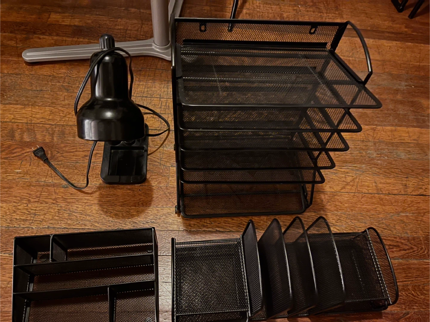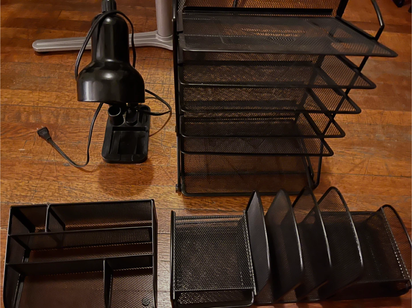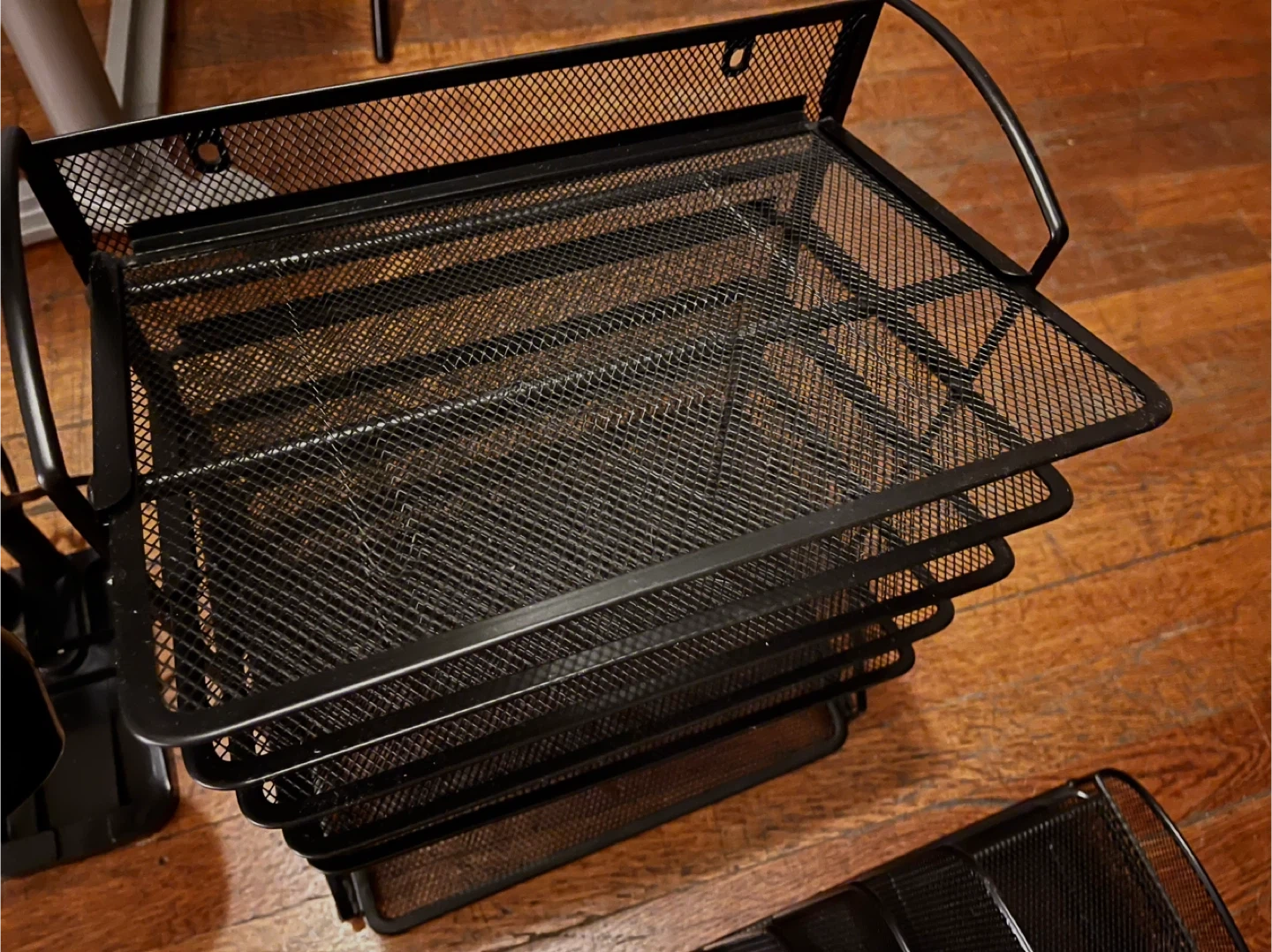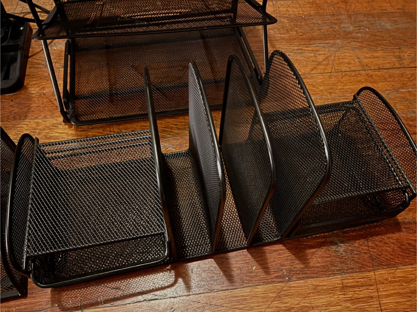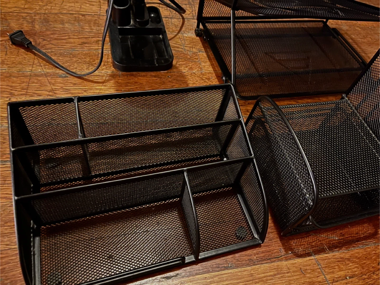 3x Metal Black Mesh Desk Organizers + Desk Stand