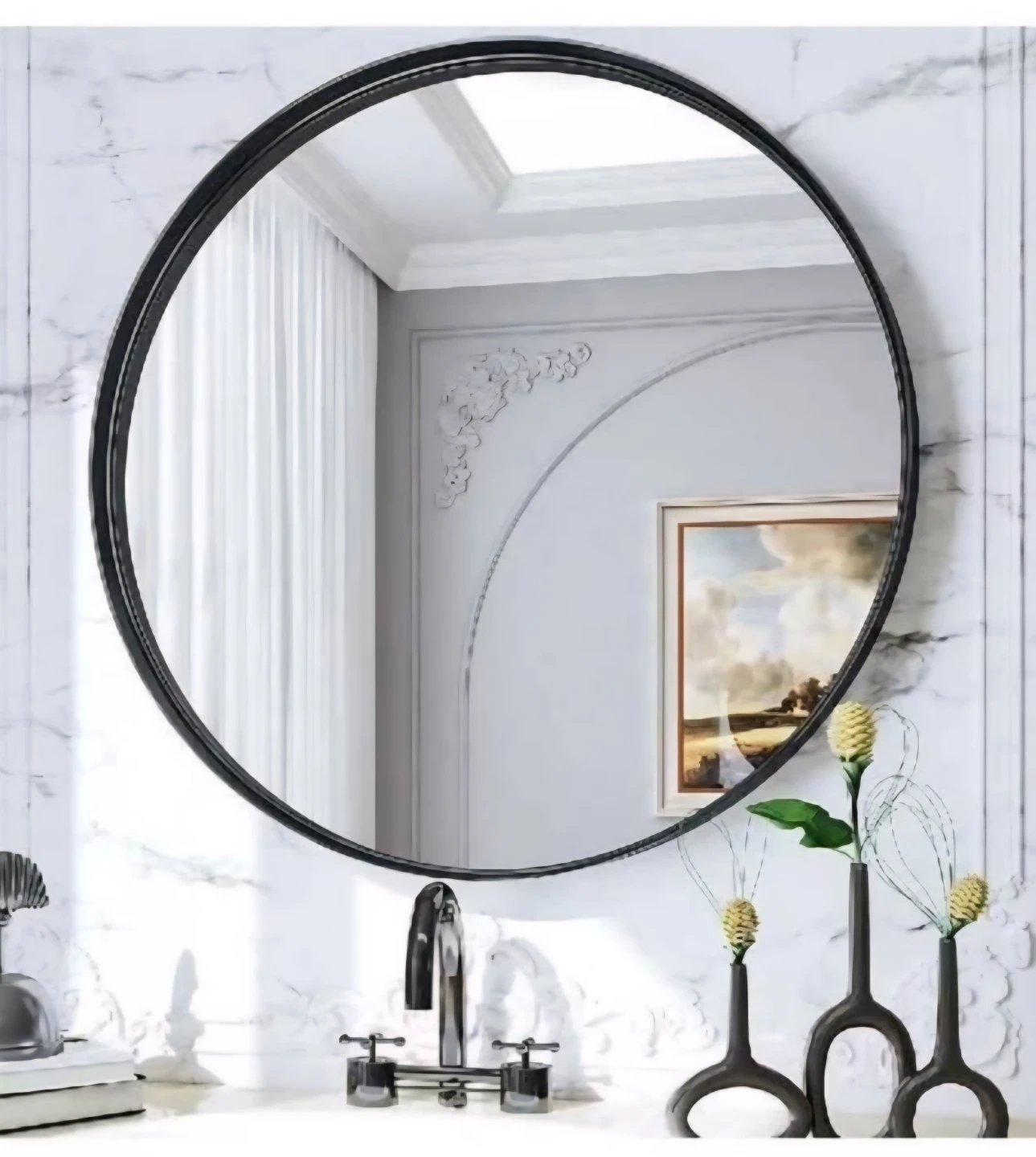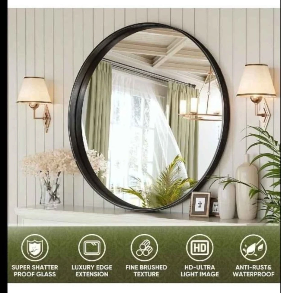 【Fashionable Design】 The Modern round mirror makes your bathroom more elegant and classy, which especially attracts your eyes. Ideal for decorative Vanity Mirror to make the space more brighter and spacious.