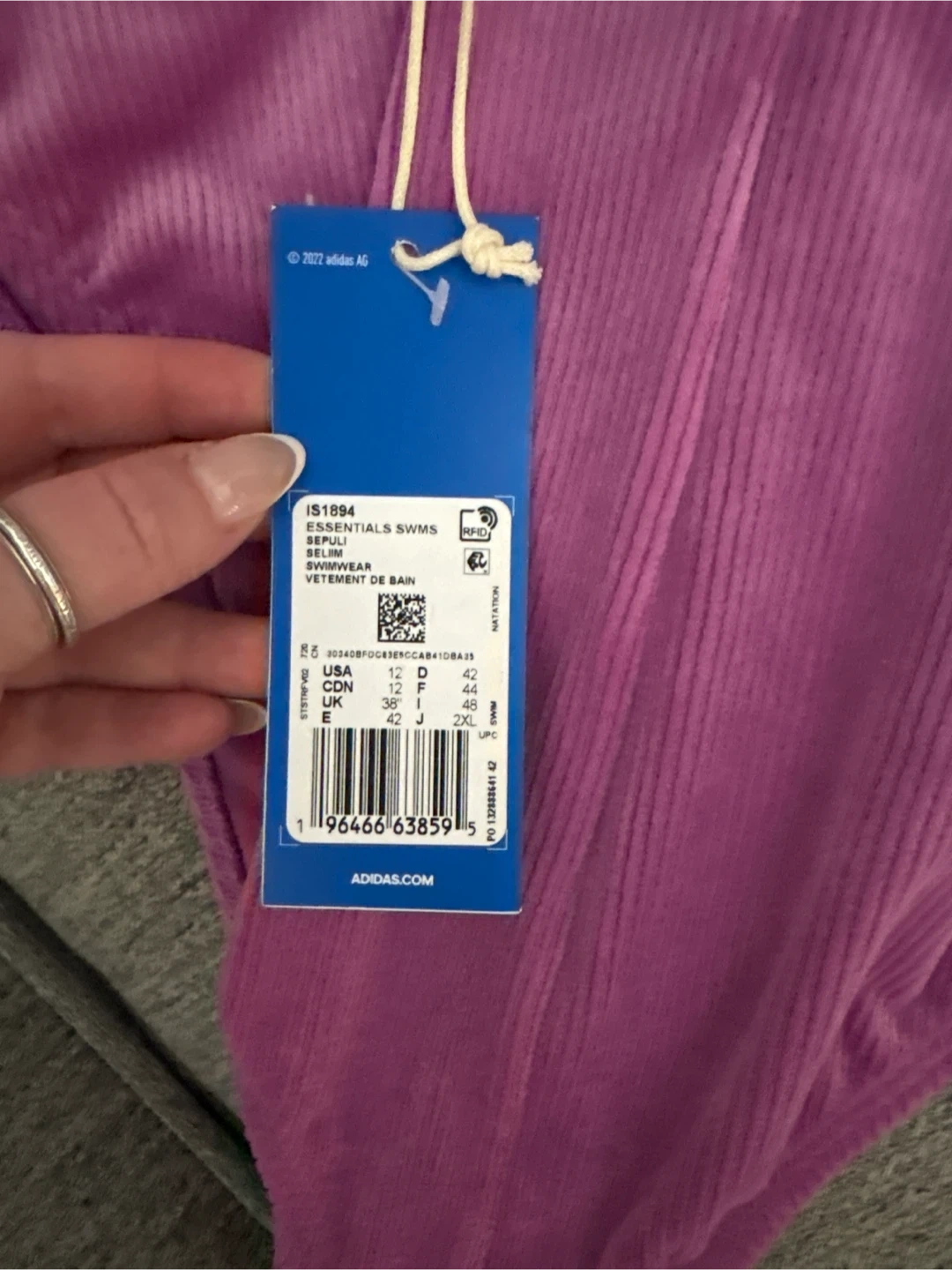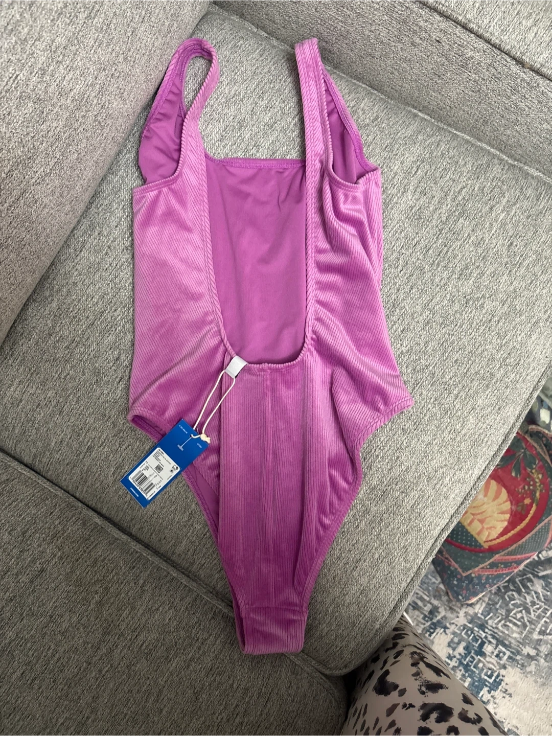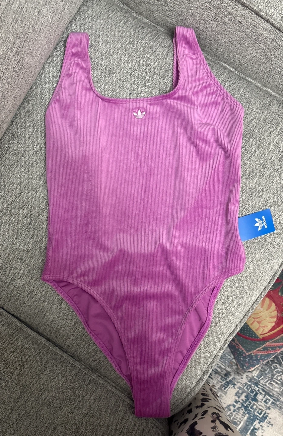 Selling a brand new with tags Adidas Essentials swimsuit in size large. It's a beautiful purple colour and made of a soft, corduroy-like material. Never tried on, brand new. Gift-able π