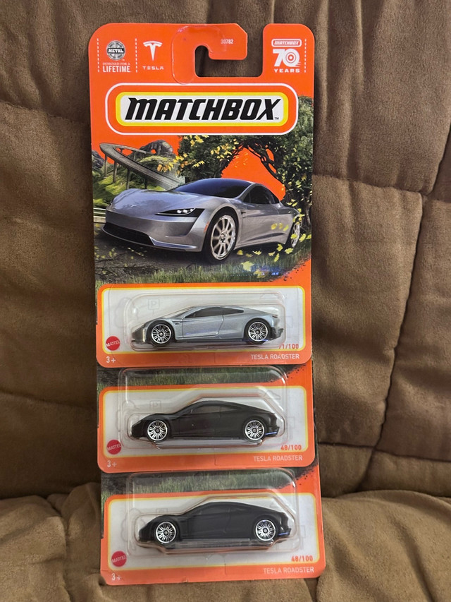 I'm offering a new set of Matchbox Tesla Roadsters, a sleek addition to any car collection! These die-cast cars is a detailed replica, perfect for display or play. These cars is still in its original packaging, ensuring it remains in pristine condition. If you're reading this, yes, it's still available, so no need to ask – grab them before they zooms away!