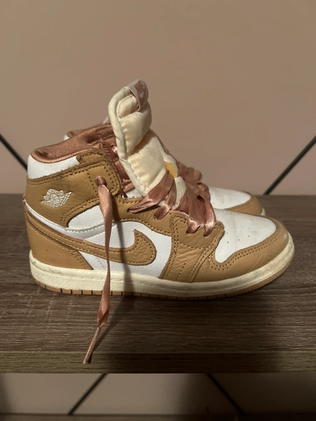 Selling a pair of toddler-sized Nike Air Jordan 1 Mid SE sneakers in the Sanddrift colourway. They are a size 7 in US/Canadian sizing. Please see the photos for the condition.