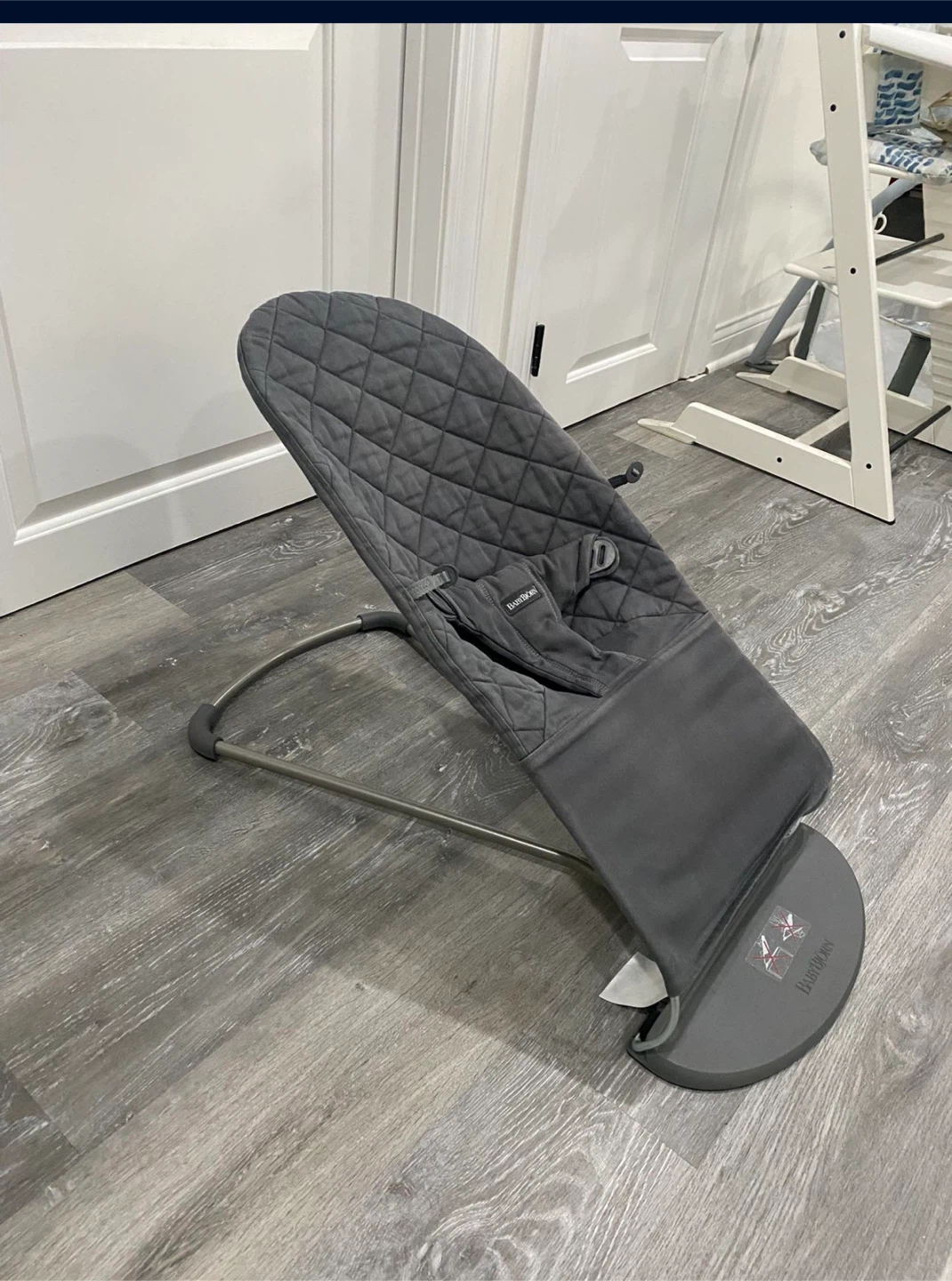 Selling a BabyBjorn Bouncer Balance Soft in gray. It's in great condition and ready for a new home. This bouncer is designed to provide excellent support and comfort for your baby, making it a must-have for parents. It's lightweight and easy to move around the house, so you can keep your little one close by while you get things done