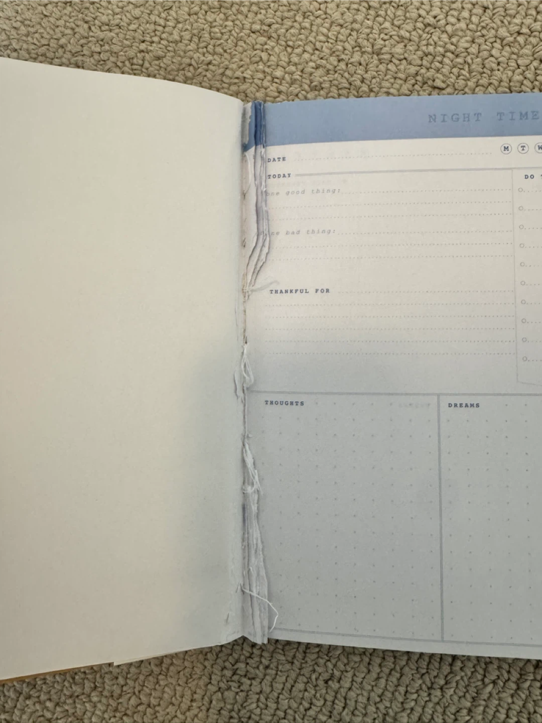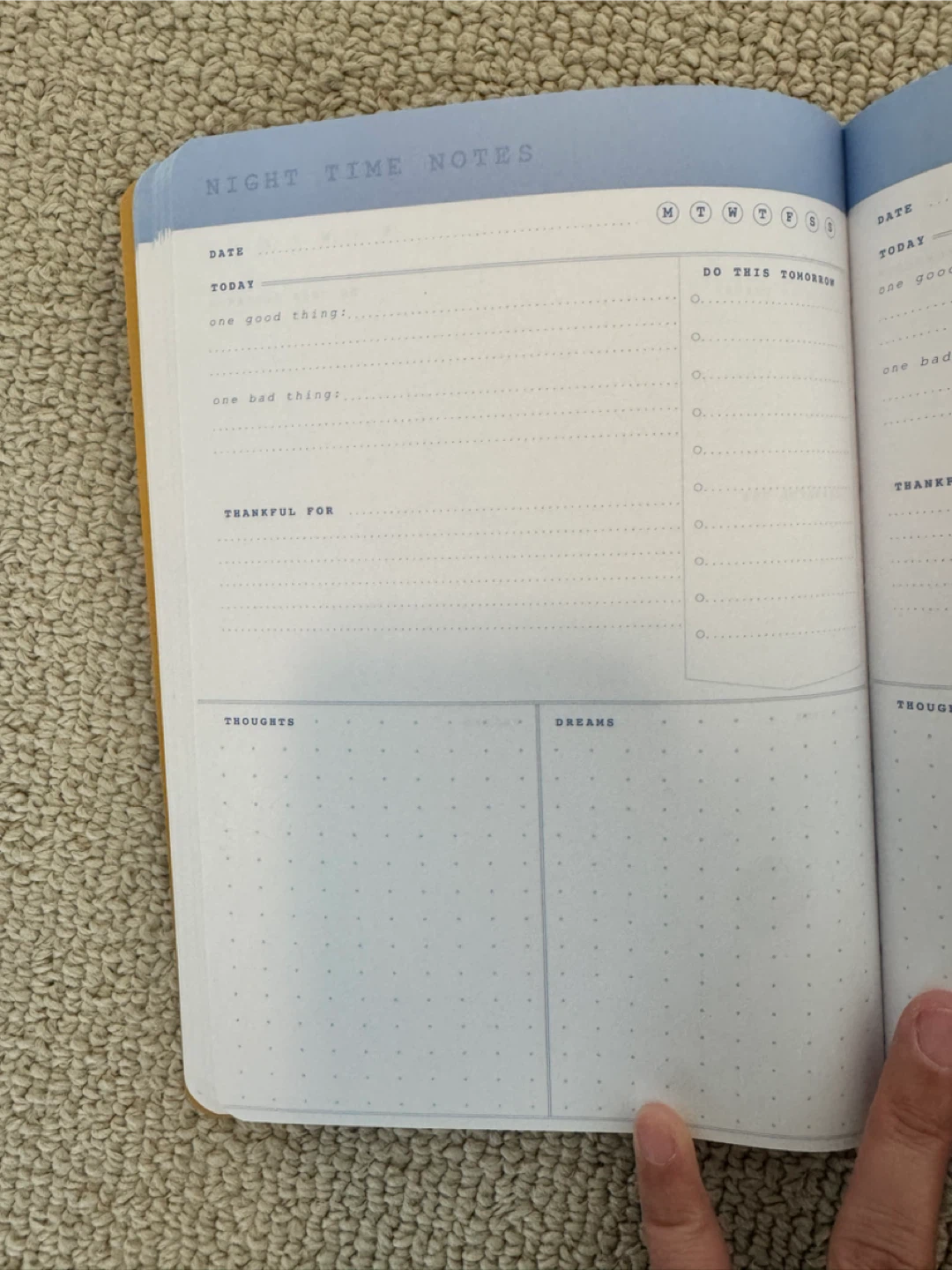 A Gartner Studios Guided Daily Nightly Notes Journal. It's designed to help you capture the days events, reflections, and thoughts for tomorrow. It includes easy-to-follow trackers to help you end your day with reflection and gratitude. It was used 20% and removed those pages. 70-80% are still available.