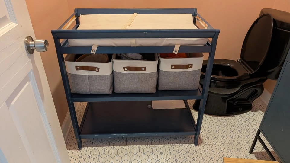 This is a Suite Riley Lifetime Changing table (Navy) with an organic cotton changing pad. All in very clean and good condition.