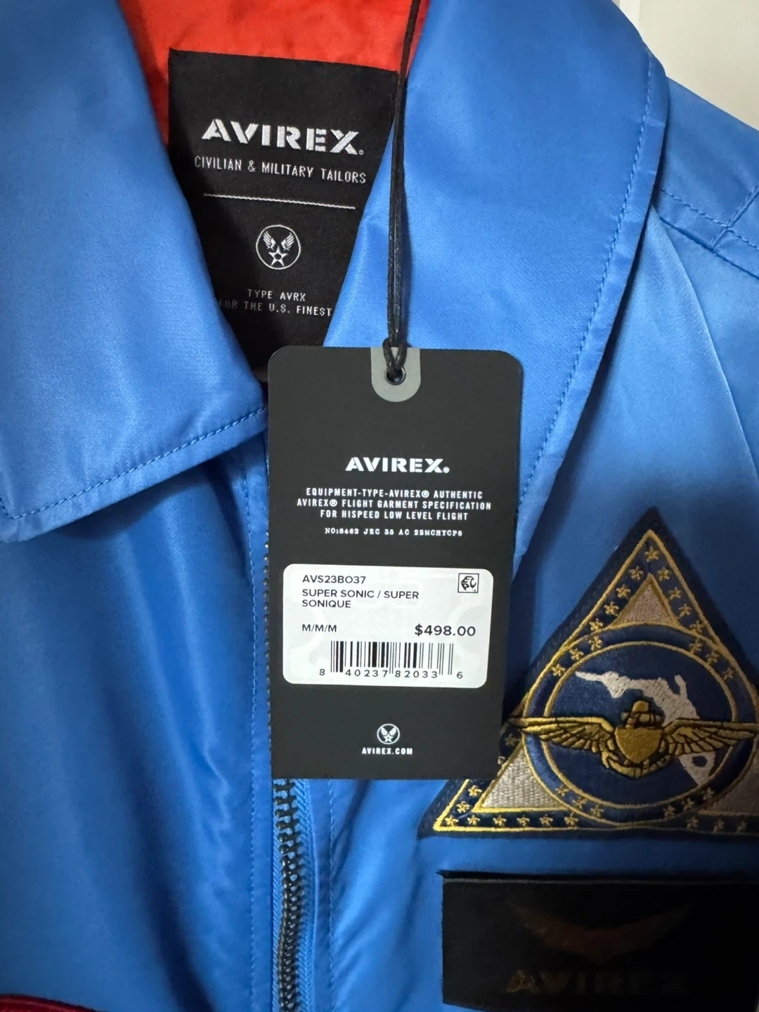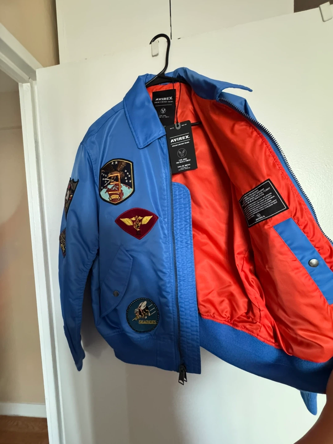 This is an Avirex Civilian & Military Tailors jacket in a Super Sonic/Super Blue color. The jacket is a size M/M. Originally bought for $498!