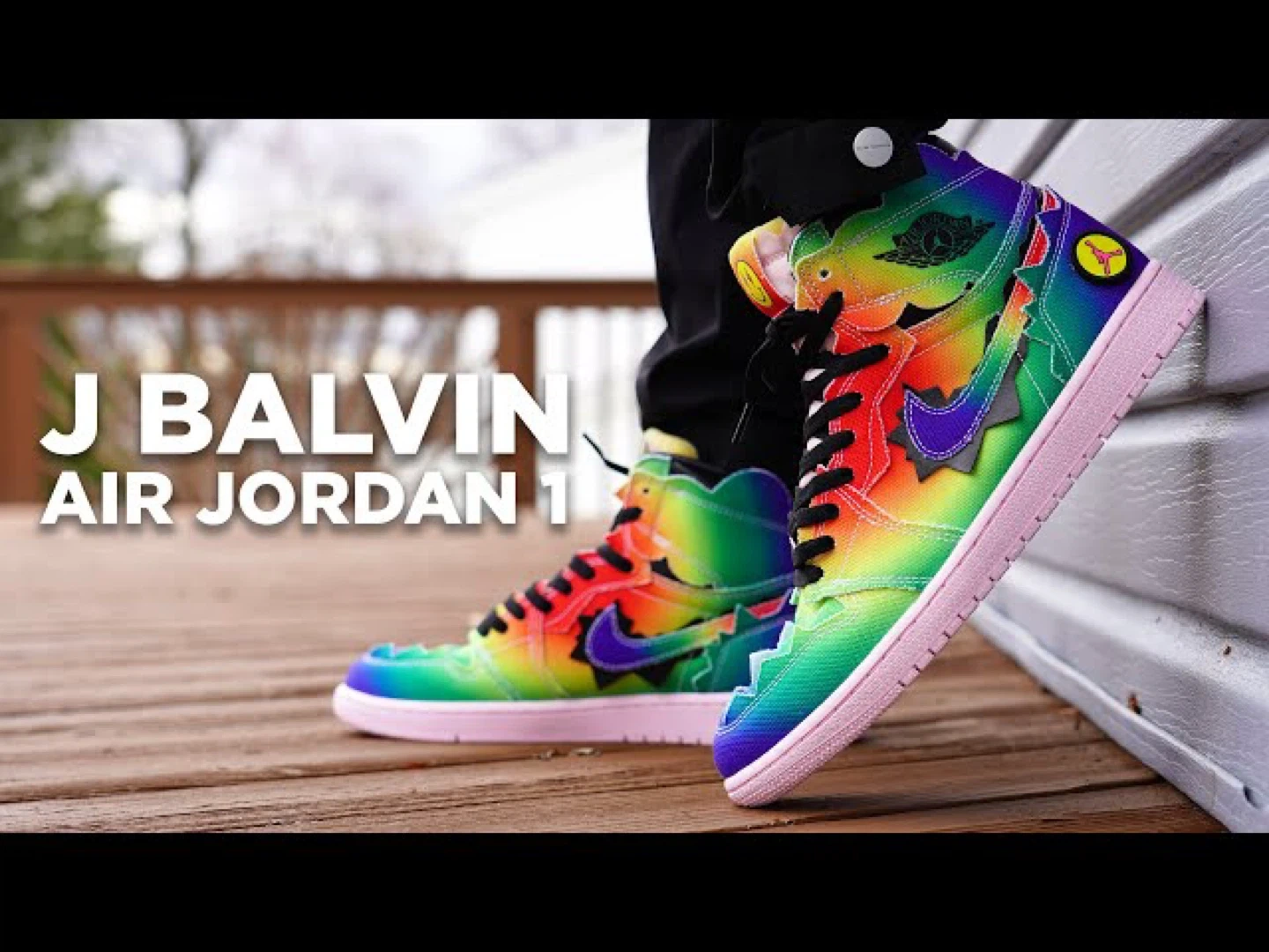 Selling a pair of Nike Air Jordan 1 J Balvin sneakers! These are a vibrant and unique pair of shoes that will definitely make a statement. They feature a colorful design with a mix of rainbow hues and distinctive details. Perfect for adding a pop of color to your wardrobe!