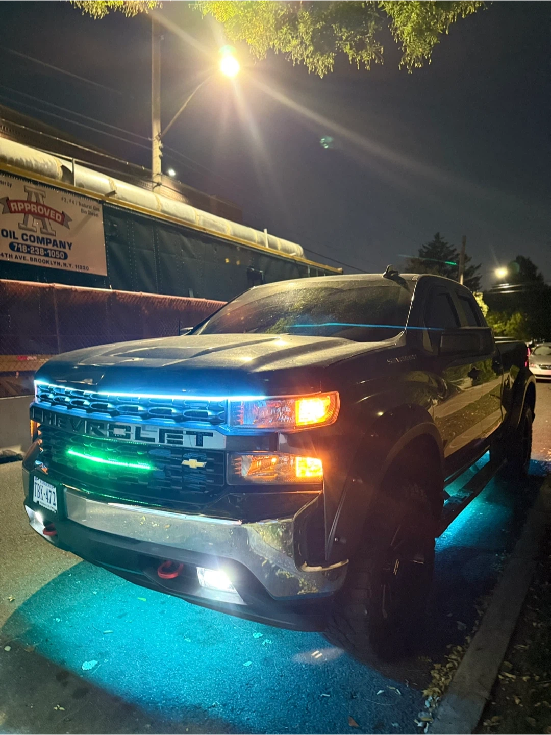 Selling a Chevrolet Silverado truck. It appears to be in good condition and well-maintained. The interior looks clean and the exterior has some aftermarket modifications.