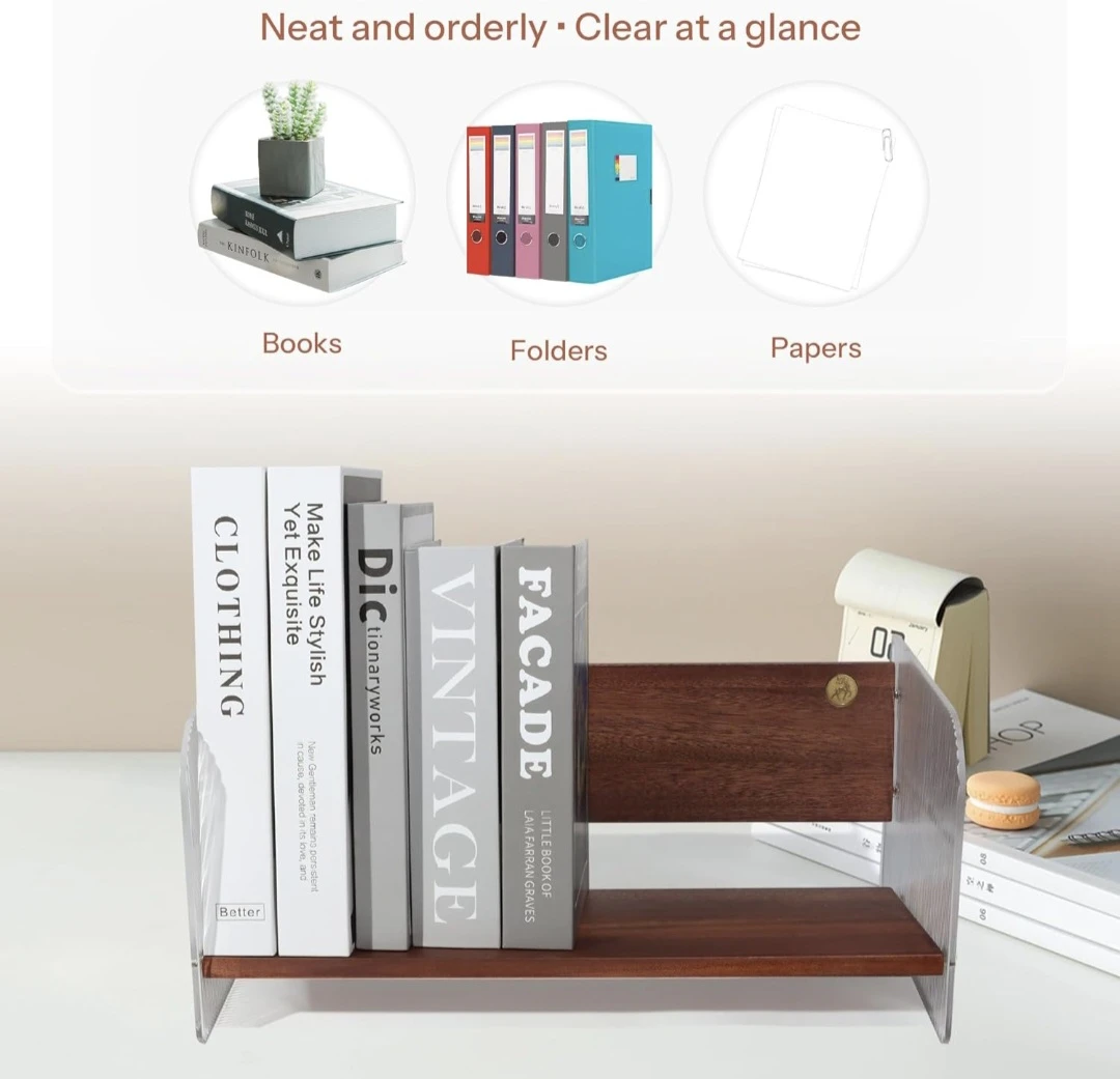 Walnut Wood Acrylic Desk Organizer Book Stand