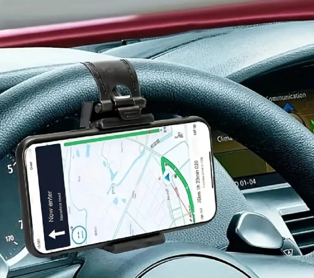 This Steering Wheel Phone Holder Mount keeps your phone perfectly positioned right where you need it β no fumbling, no distractions. Effortlessly clips onto your steering wheel for instant hands-free access to maps, calls, and music.
