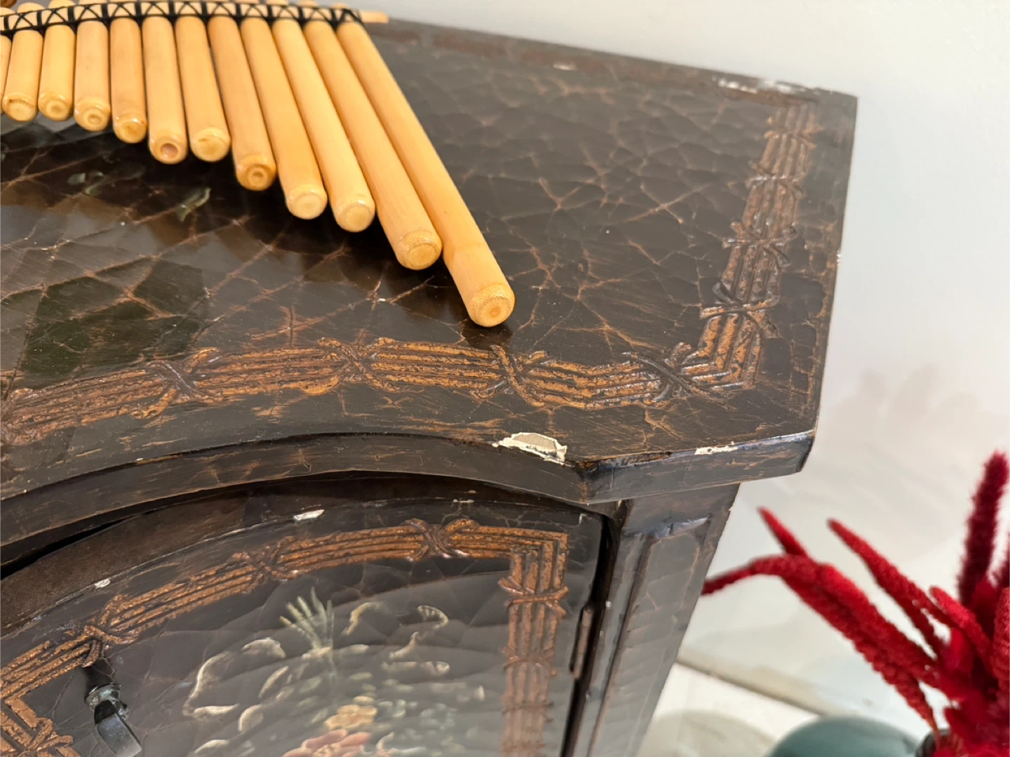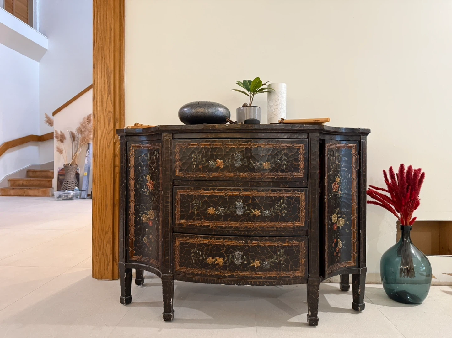 Antique Style Floral Accent Cabinet
