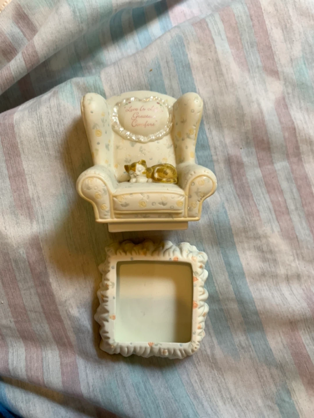 Selling a lovely Ardleigh Elliott porcelain music box from the Home Comforts Heirloom Porcelain Music Box Collection. It plays the melody of 'The Greatest Love of All'. It's in great condition!