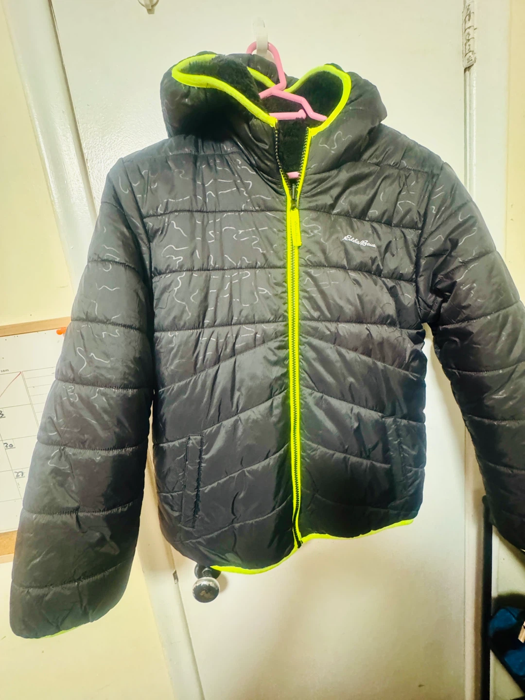 Selling a black Eddie Bauer puffer jacket! It's in like new condition . Cash only and porch pick up at Midland and Lawrence, Scarborough