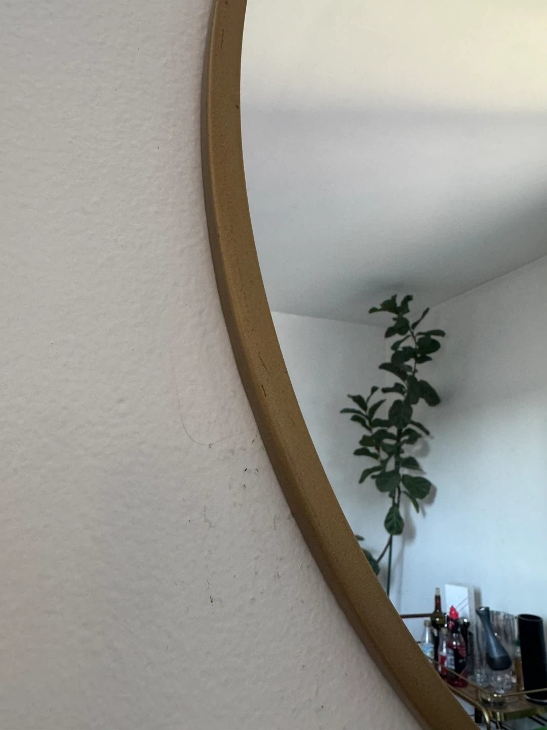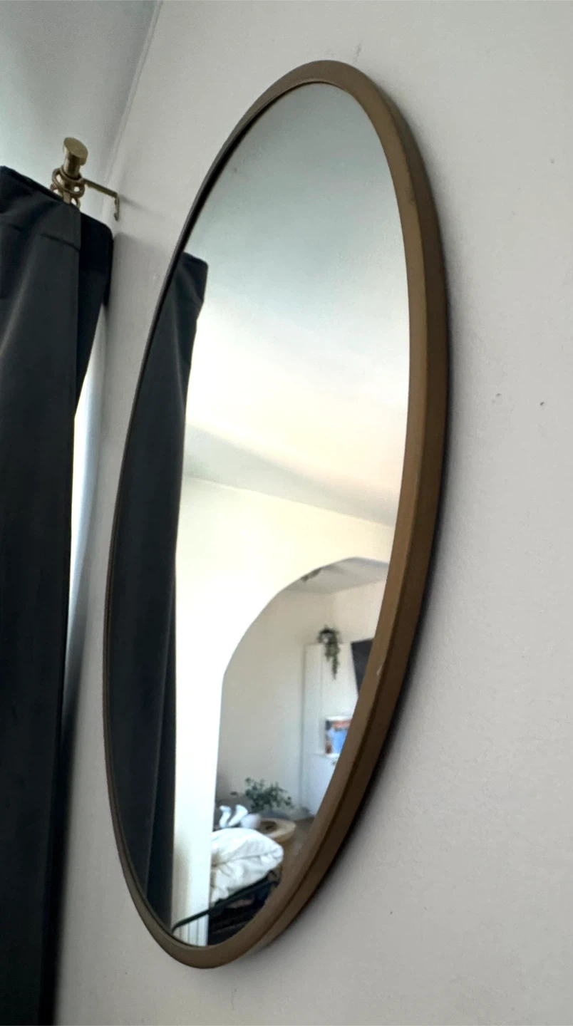 Selling a round mirror with a gold frame! It's in great condition and ready to brighten up your space. The simple design will fit in with any decor. Will take best offer