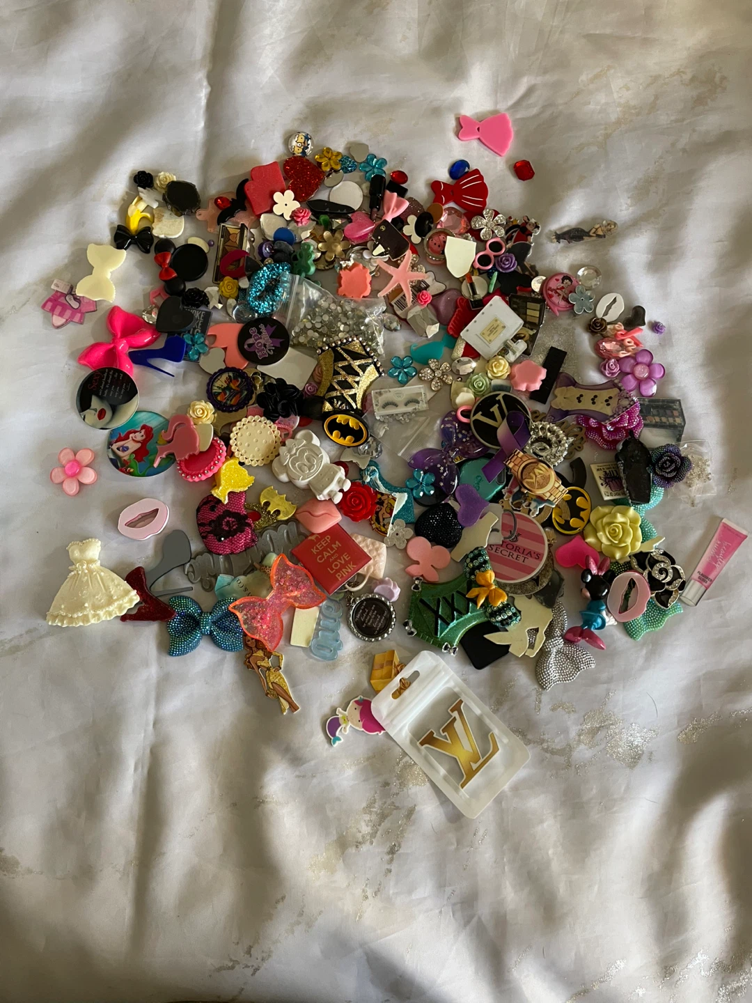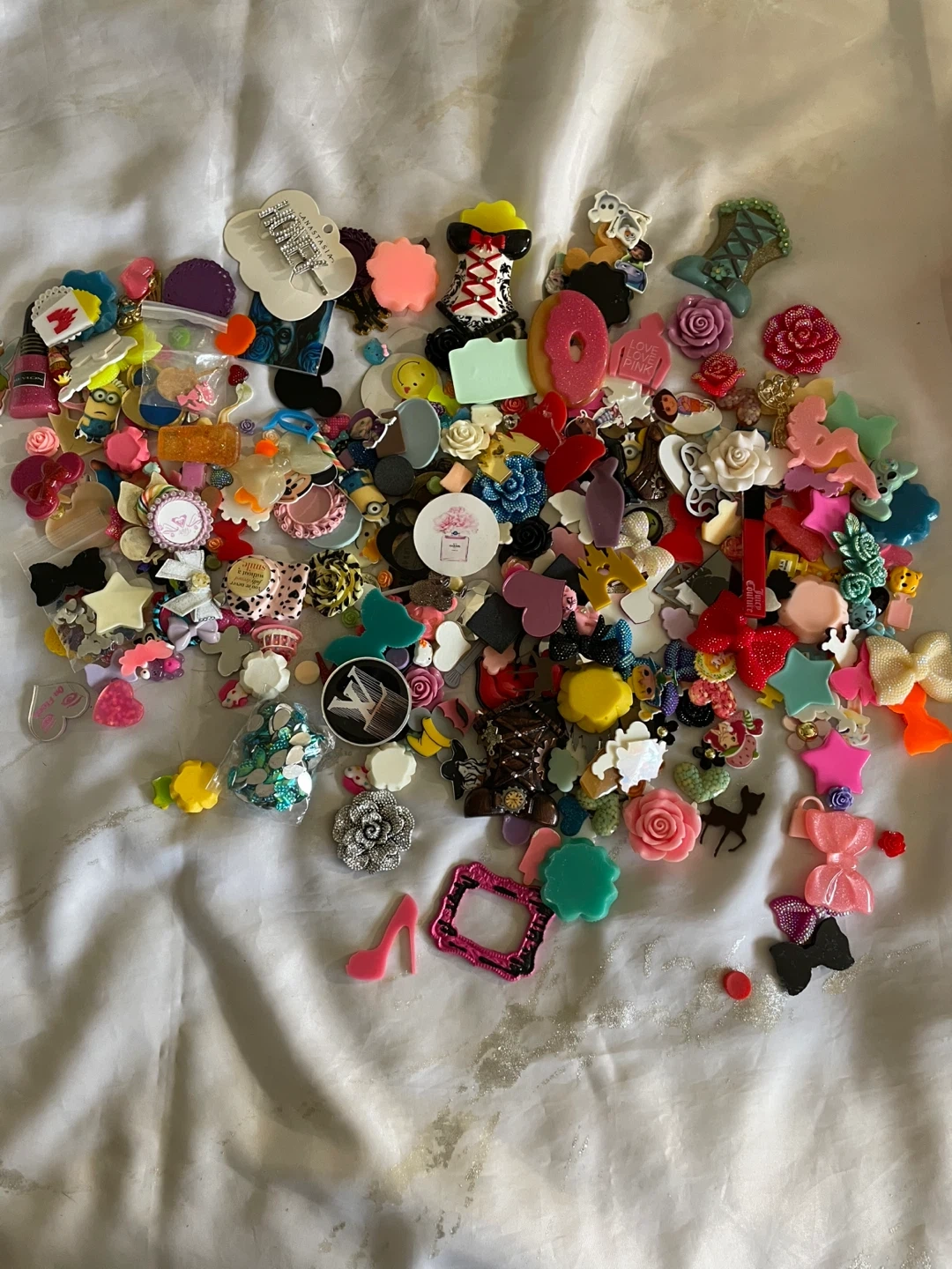 A collection of assorted charms and accessories, perfect for crafts or adding a unique touch to your items! There's a variety of shapes, colours, and styles to choose from. Great for DIY projects!