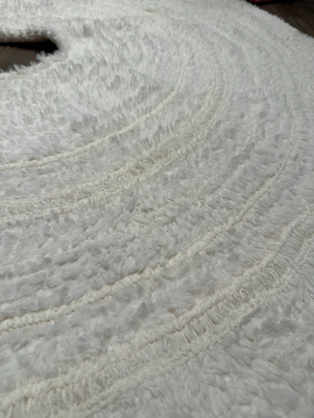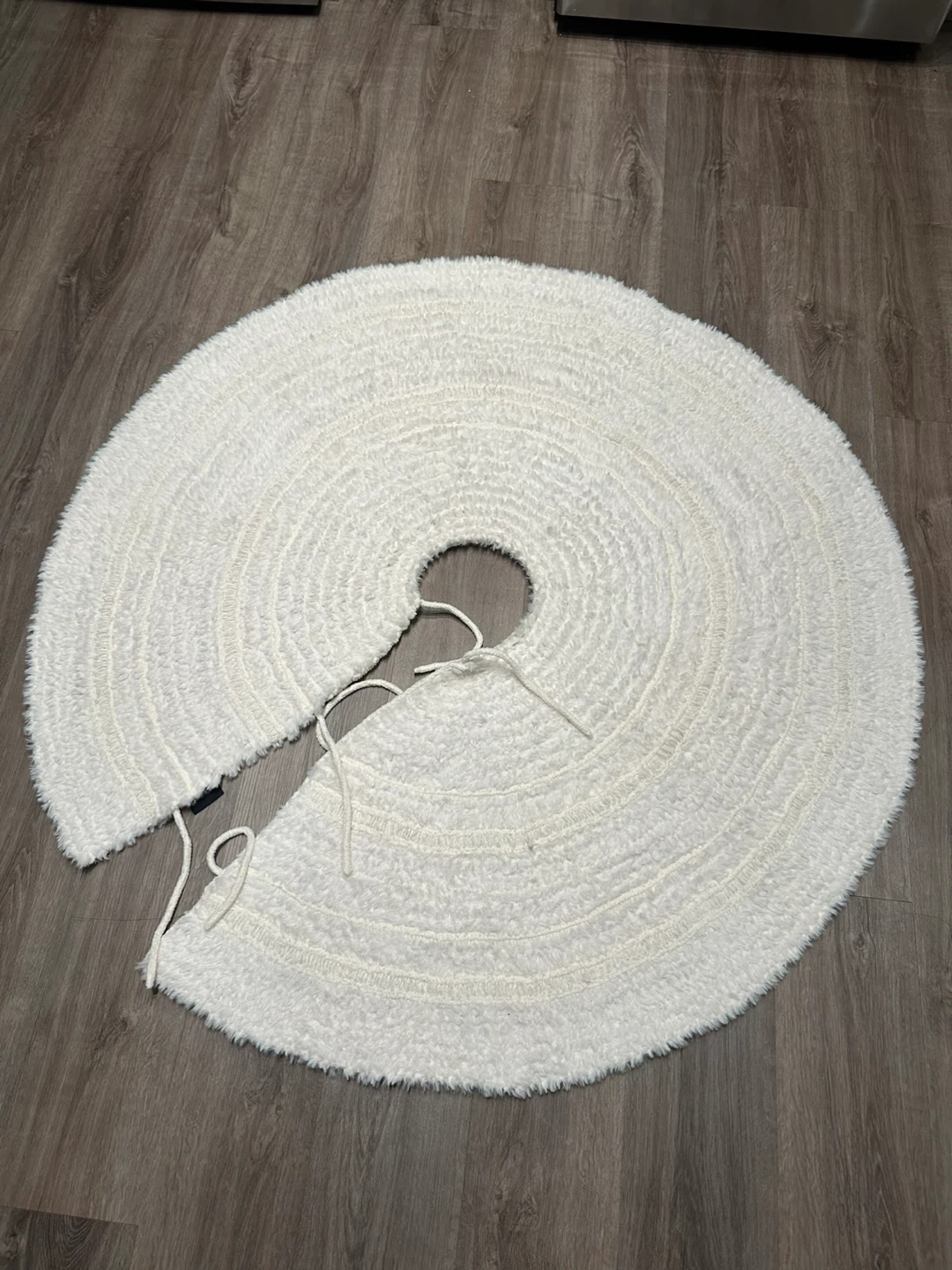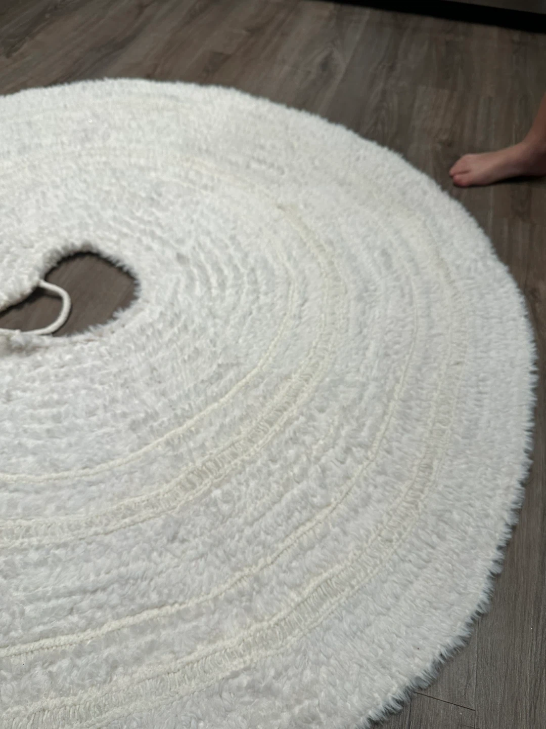 Selling a Rachel Zoe plush knit Christmas tree skirt! It's a beautiful cream faux fur material, perfect for adding a cozy touch to your holiday decor. The skirt is in great condition and ready to adorn your Christmas tree this season. Originally $85