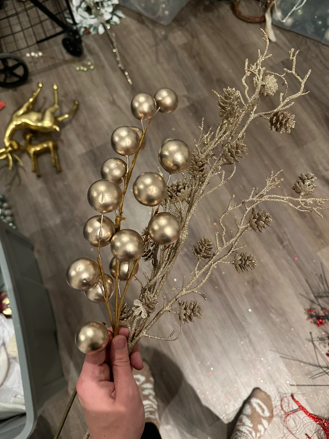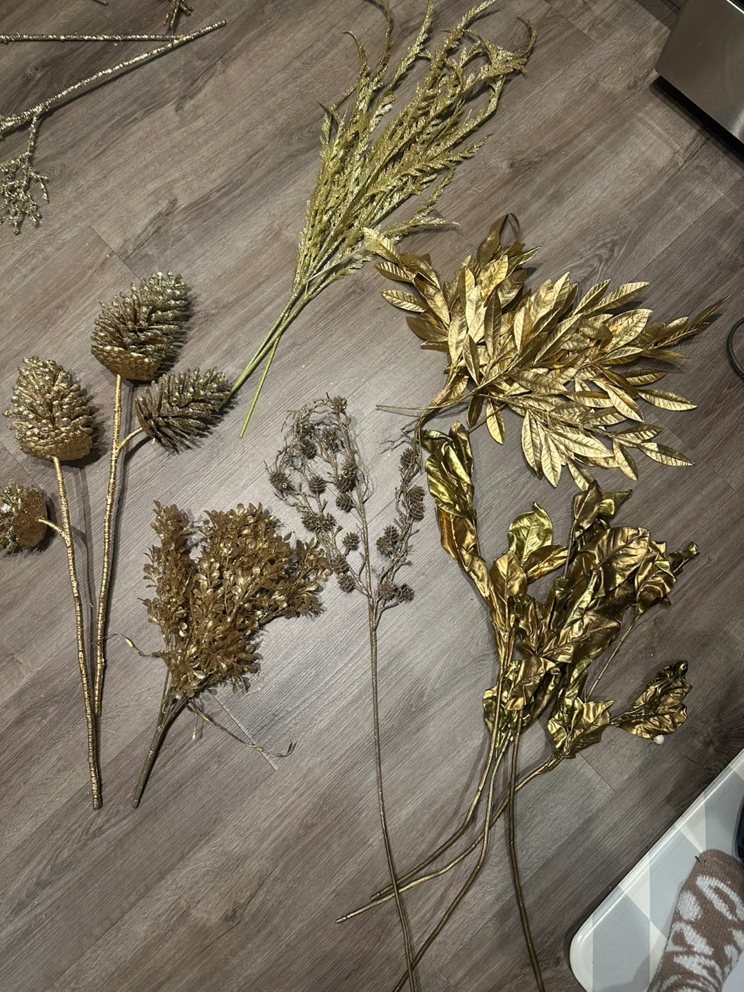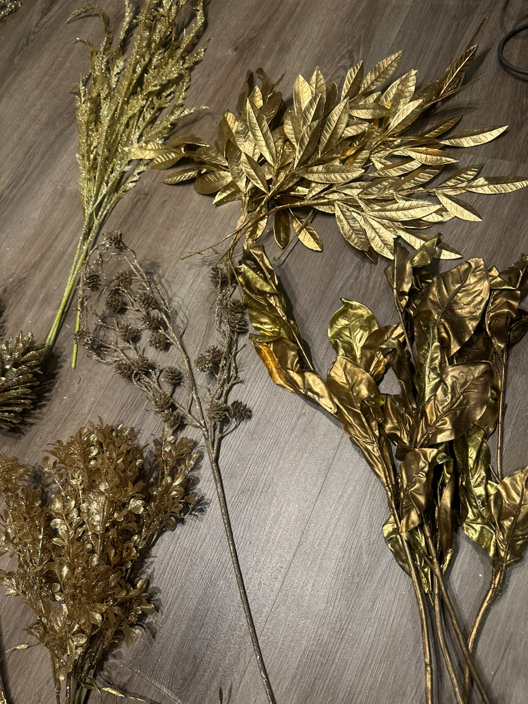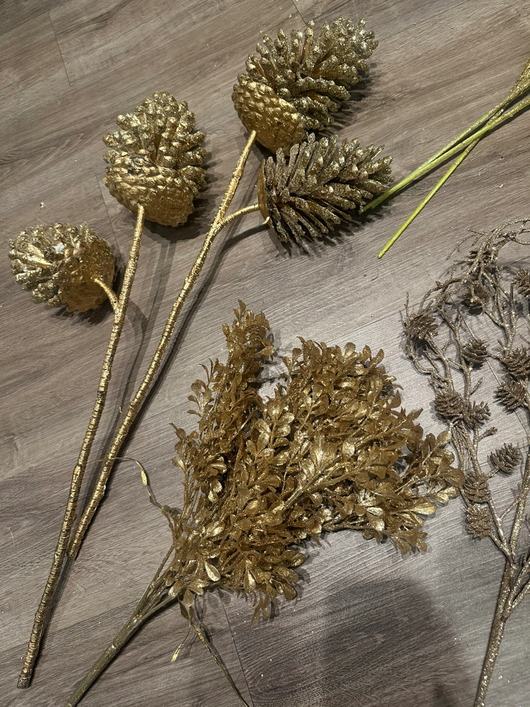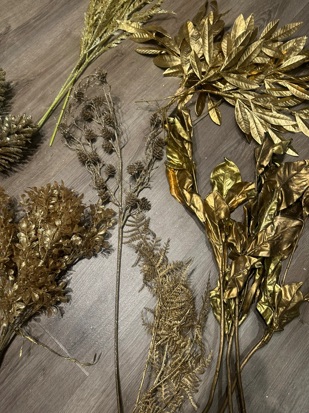 Selling a beautiful assortment of large gold decorative floral stems. Includes various styles and textures to create a beautiful arrangement. Fill several vases with this high quality holiday decor