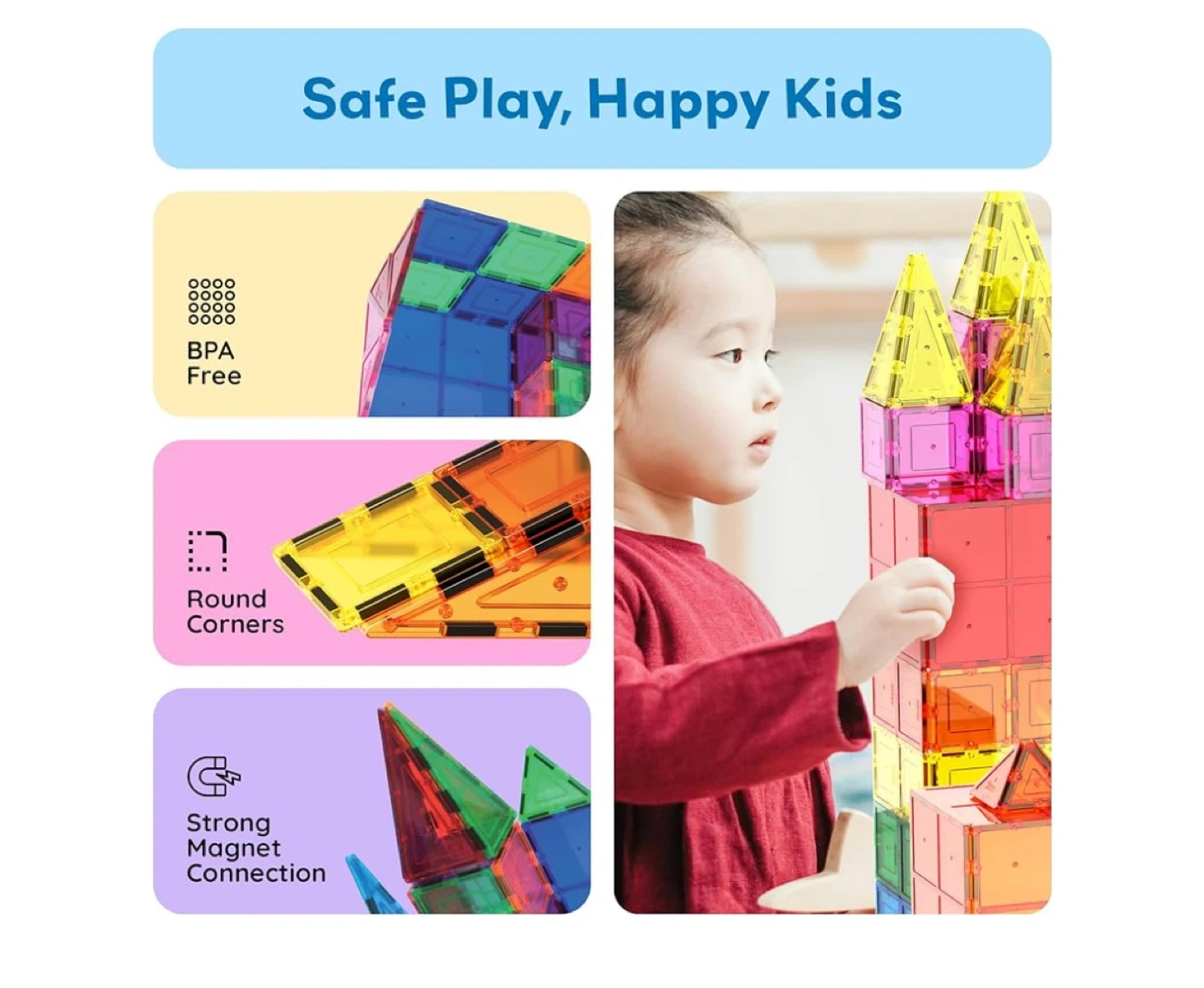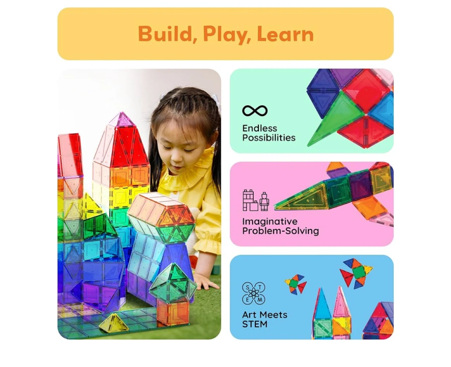 Get creative with these Picasso Tiles magnetic building blocks! This set comes with 60 pieces, perfect for building all sorts of structures. These tiles are designed to with strong magnet connections and round corners for safe play. Great for imaginative problem-solving and art meets STEM learning!