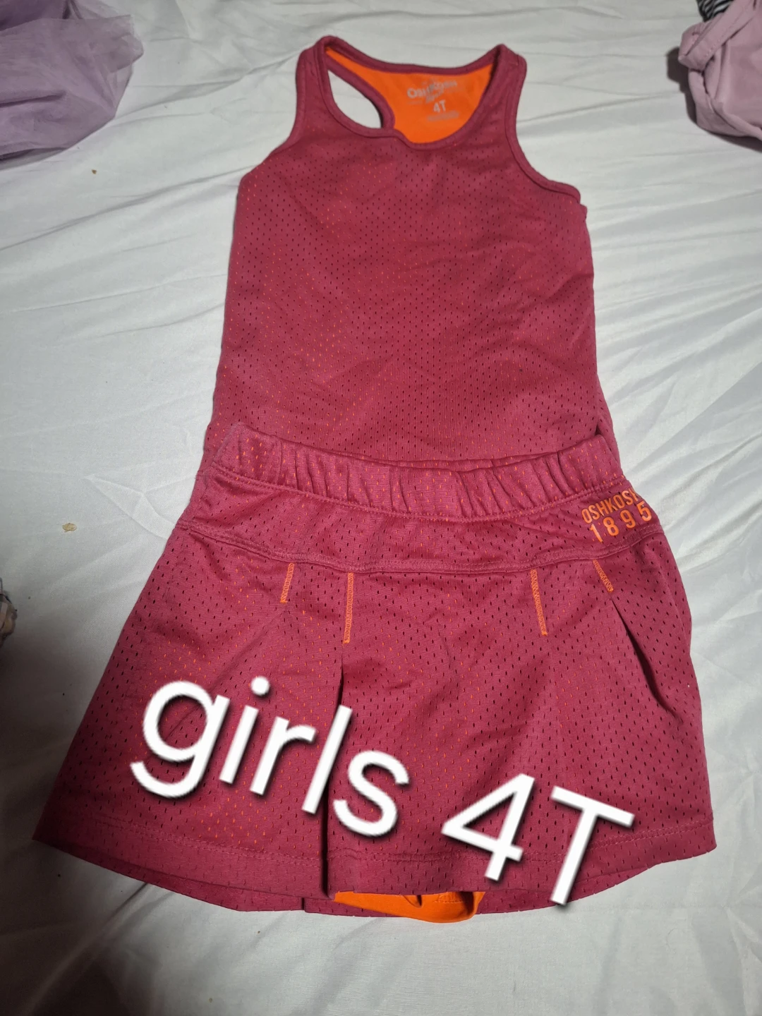 A cute OshKosh B'gosh tank top and skirt set for girls in size 4T! The set features a sporty design with a breathable, mesh-like fabric. Perfect for active little ones!