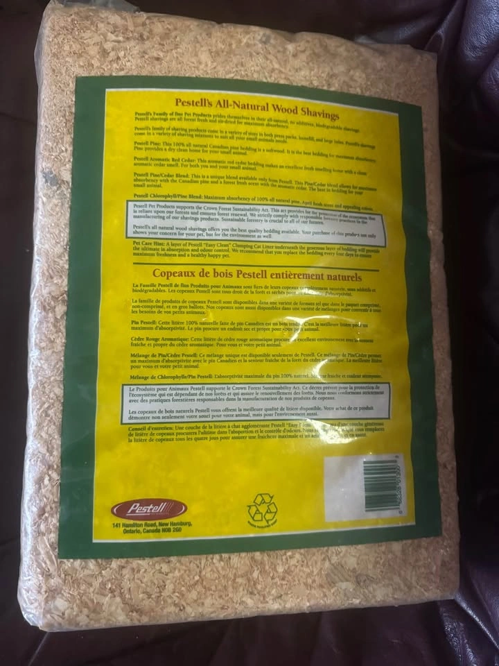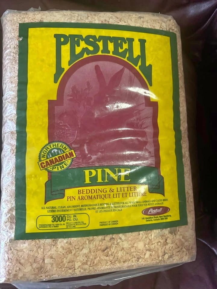 I'm selling a new bag of Pestell Pine Bedding, perfect for small animals and caged birds. This bedding is all-natural, clean, absorbent, and biodegradable, providing a comfortable and safe environment for your pets. The bag contains 3000 cu. in. of aromatic pine bedding.