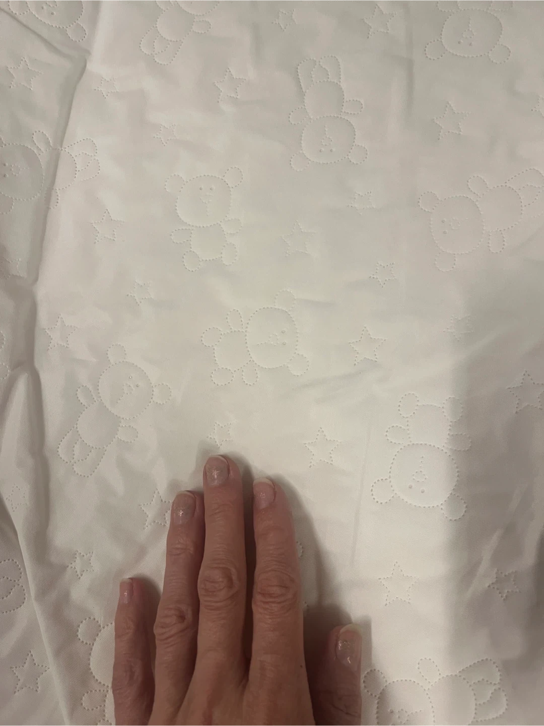 Here is a white changing pad cover. It has a cute teddy bear and star pattern. It is in great brand new condition and ready for a new home!
