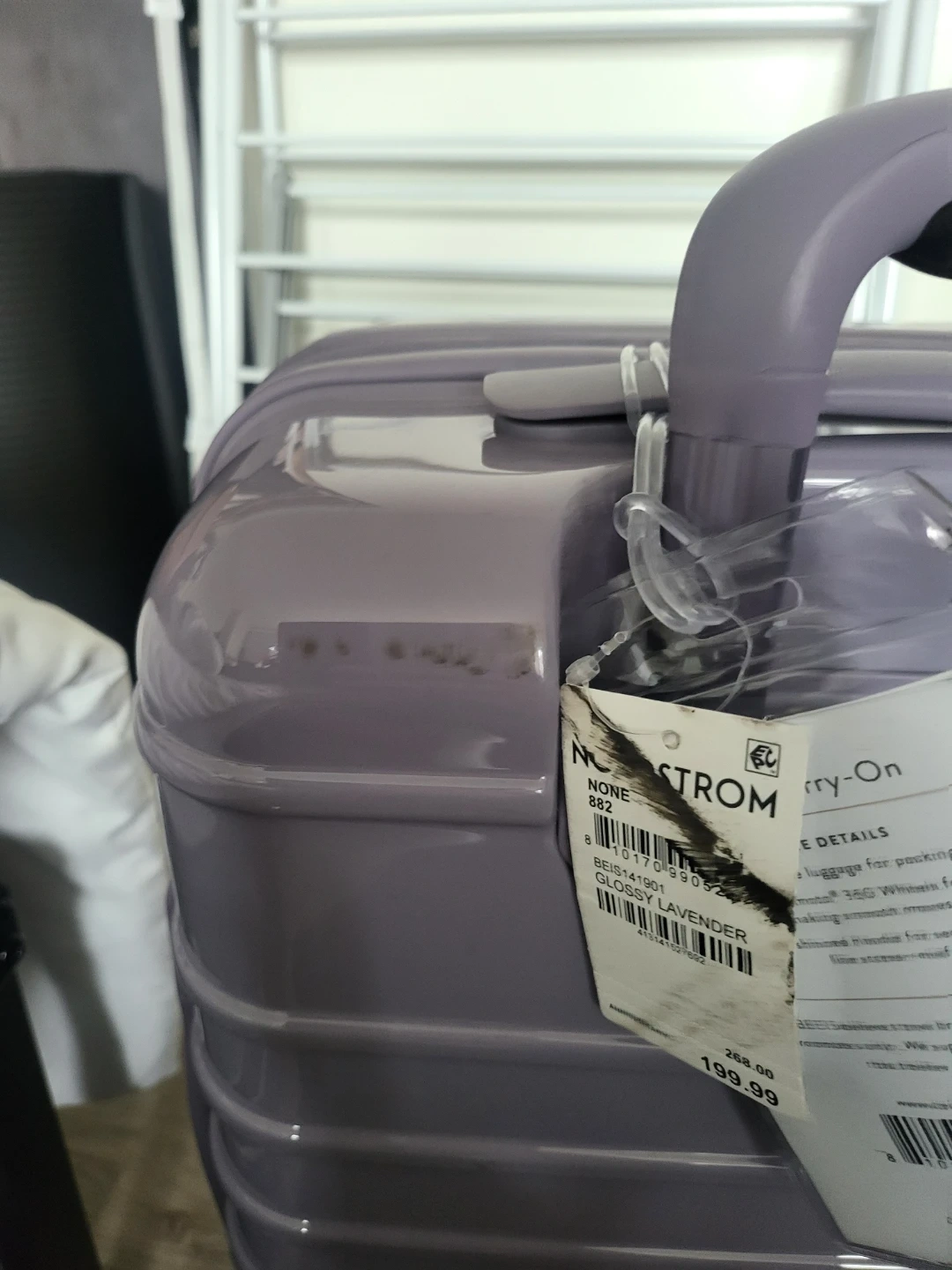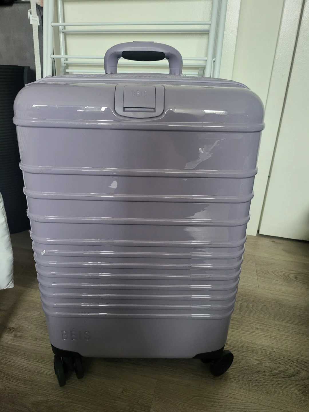 Selling a BEIS Carry-On roller suitcase in the Global Lavender color! It has some marks from use.