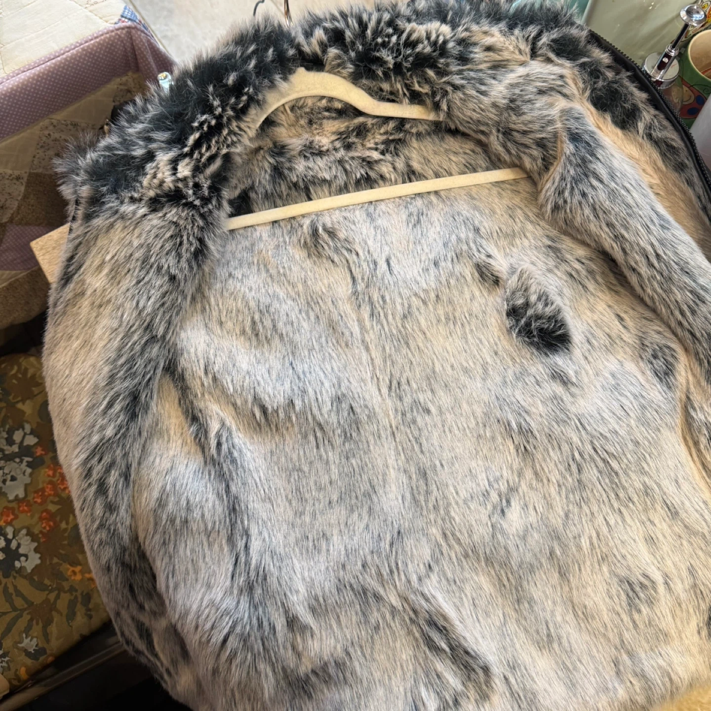 Black and grey faux fur/faux leather fully reversible vest jacket.