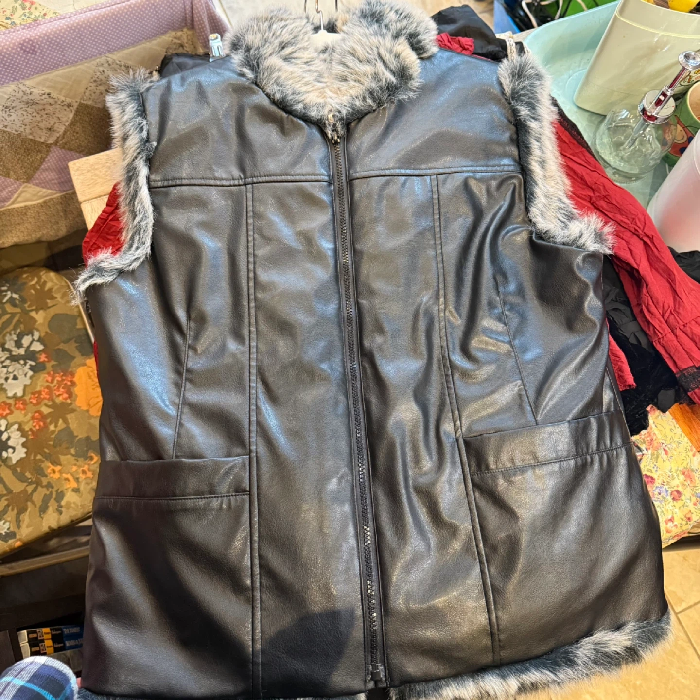 Ellabee Black Faux Leather & Fur Vest - Size L