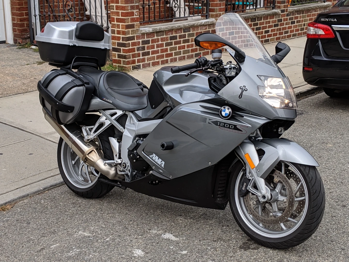 BMW k1200S, 2005. 41K. Runs very well. Very powerful. Garage kept. Comes with a famous Corbin (custom) seat. Zero Gravity windshield. Halogen fog lights. Removable side bags with a Top box that fits two helmets or groceries. ABS brakes. Tool kit. Mini alarm with remote. Motorcycle cover. Chain with lock and helmet.